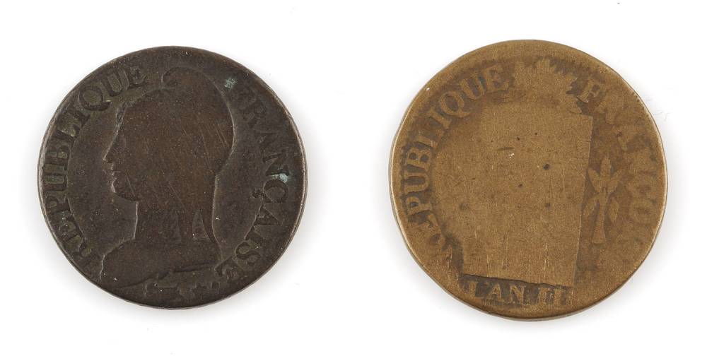 twee munten: 5 centimes l'an (8?), resp. l'an II