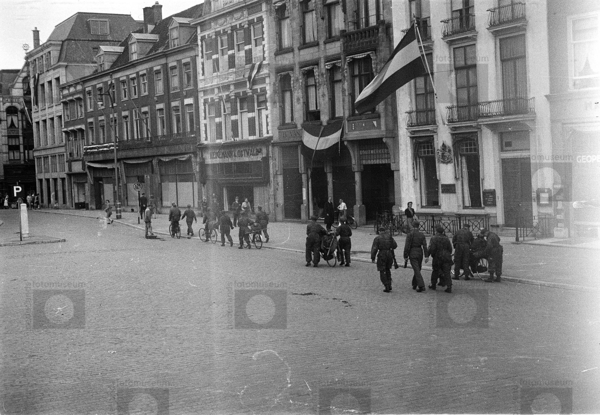 Militairen lopen in het centrum van Den Haag over st...