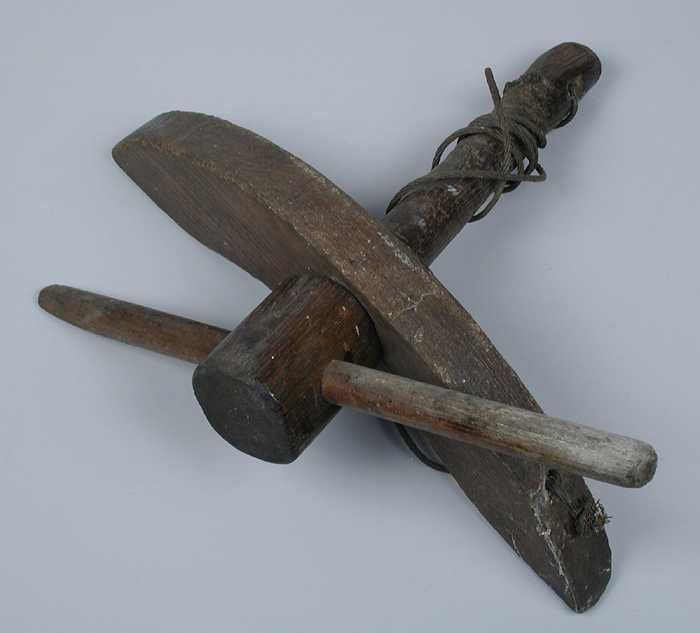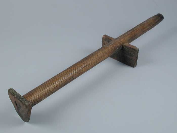 Balenhaak ofwel houten handgreep met dwars erop drie...