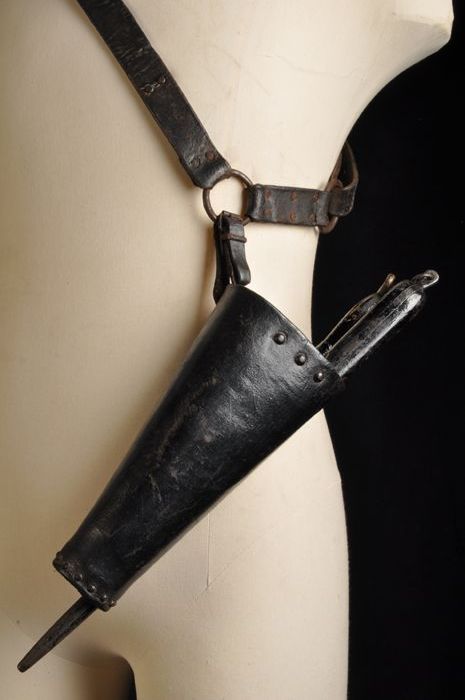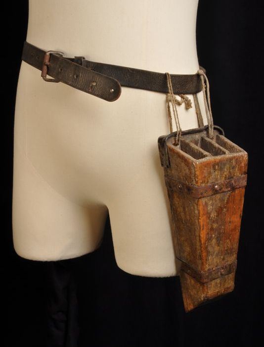 Houten schede, met drie vakken om gereedschap als me...