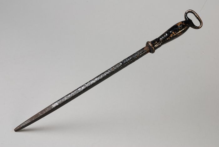 Zwartgeverfd staal of aanzetstaal uit messengordel, ...
