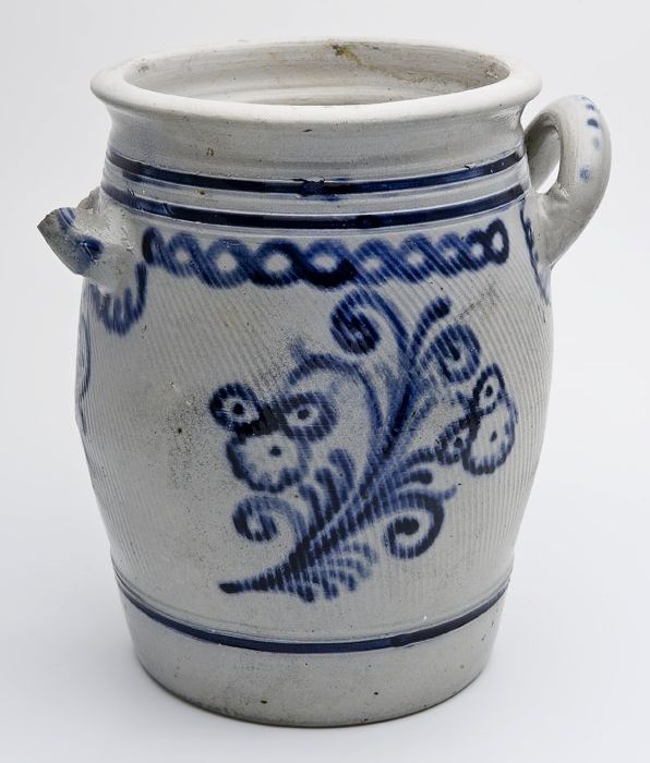 Steengoed inmaakpot met twee omhoog gebogen worstore...