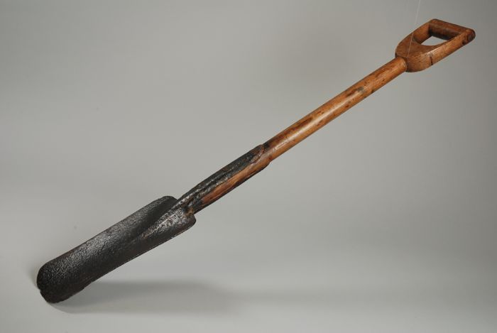 Turfschep, lang en smal blad, onderzijde met ijzer b...