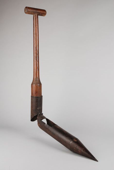 Kleine kanthaak ofwel houten paal met ijzeren punt w...