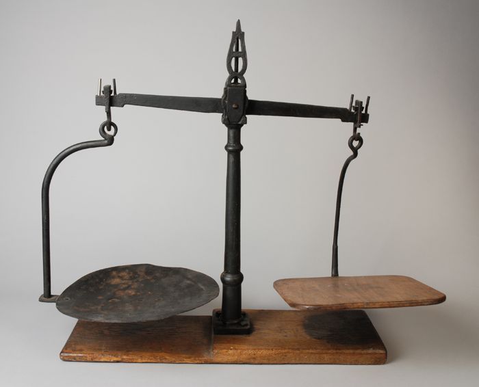 Evenaar, balans met een houten en een metalen schaal