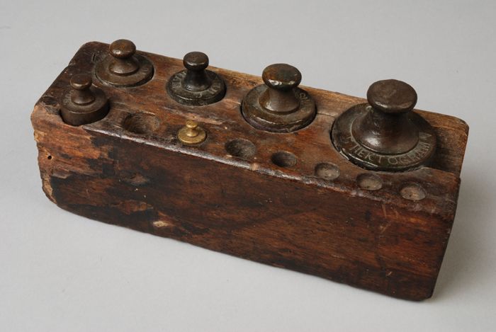 Gewichtenblok met zes knopgewichten in onsen en hect...