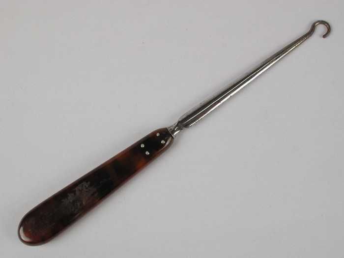 Knopenhaak van verchroomd metaal met bruine hoornen ...