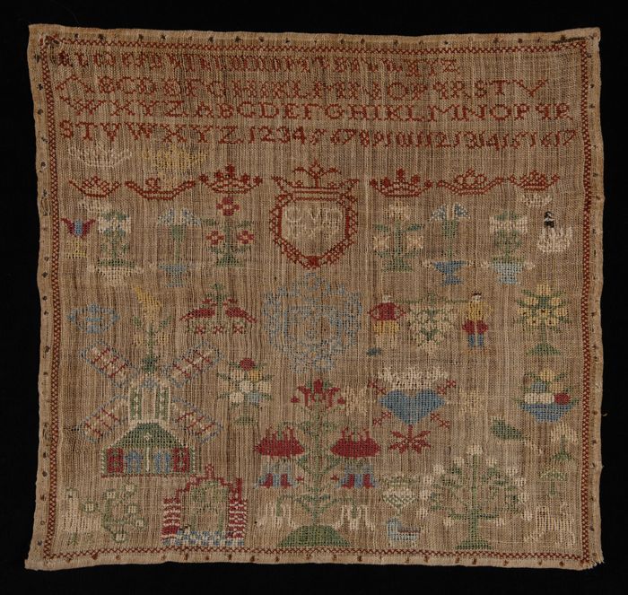 Merklap of letterlap gewerkt in kruissteek met gekle...