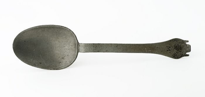 Lepel met eivormige bak en platte steel met drielobb...