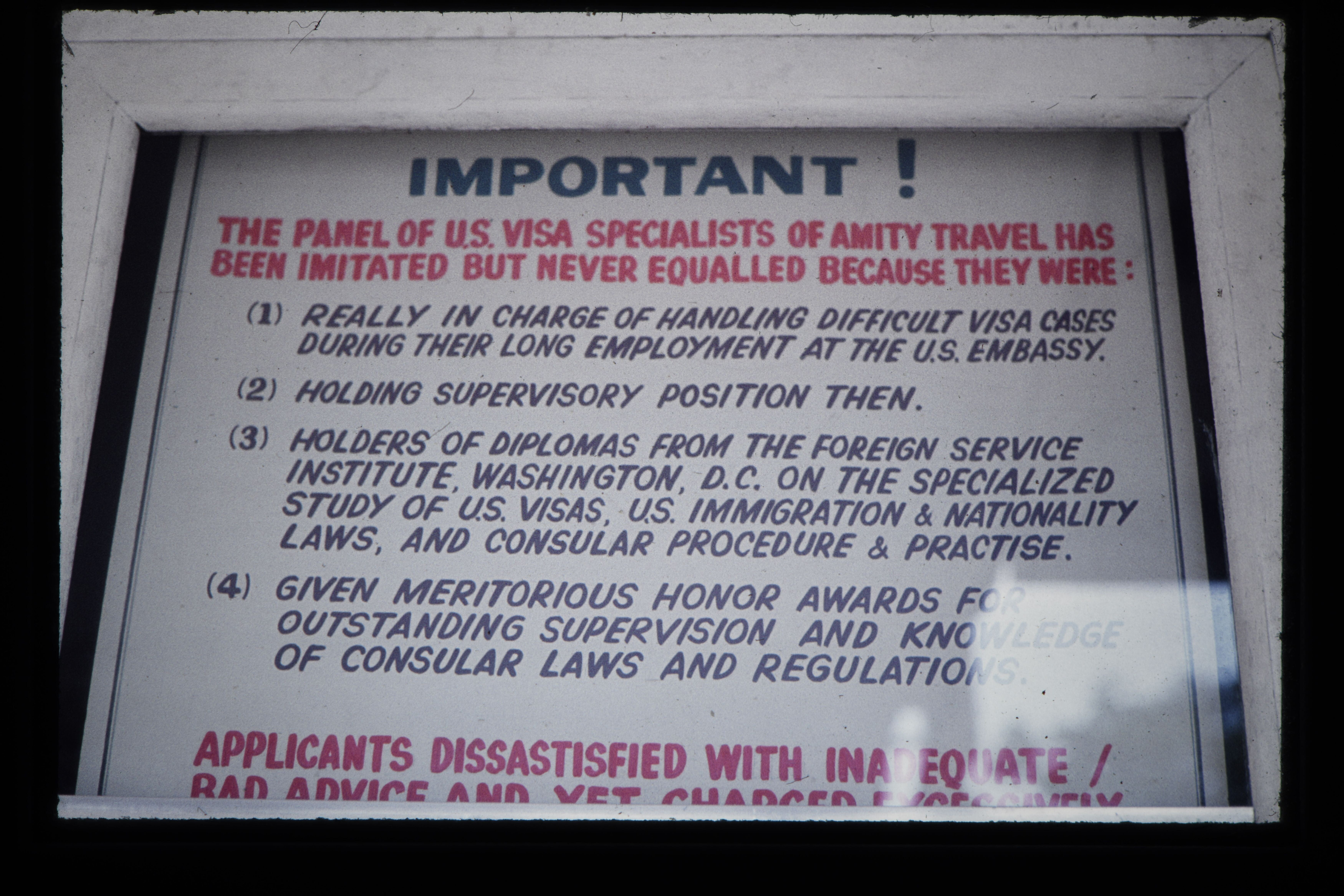 'Reclame voor hen die naar de VS willen emigreren, a...
