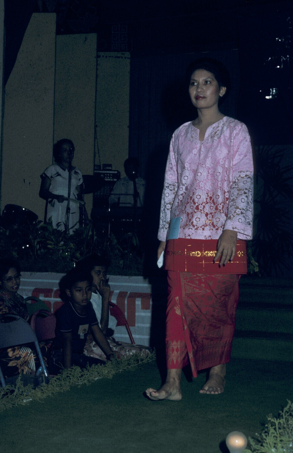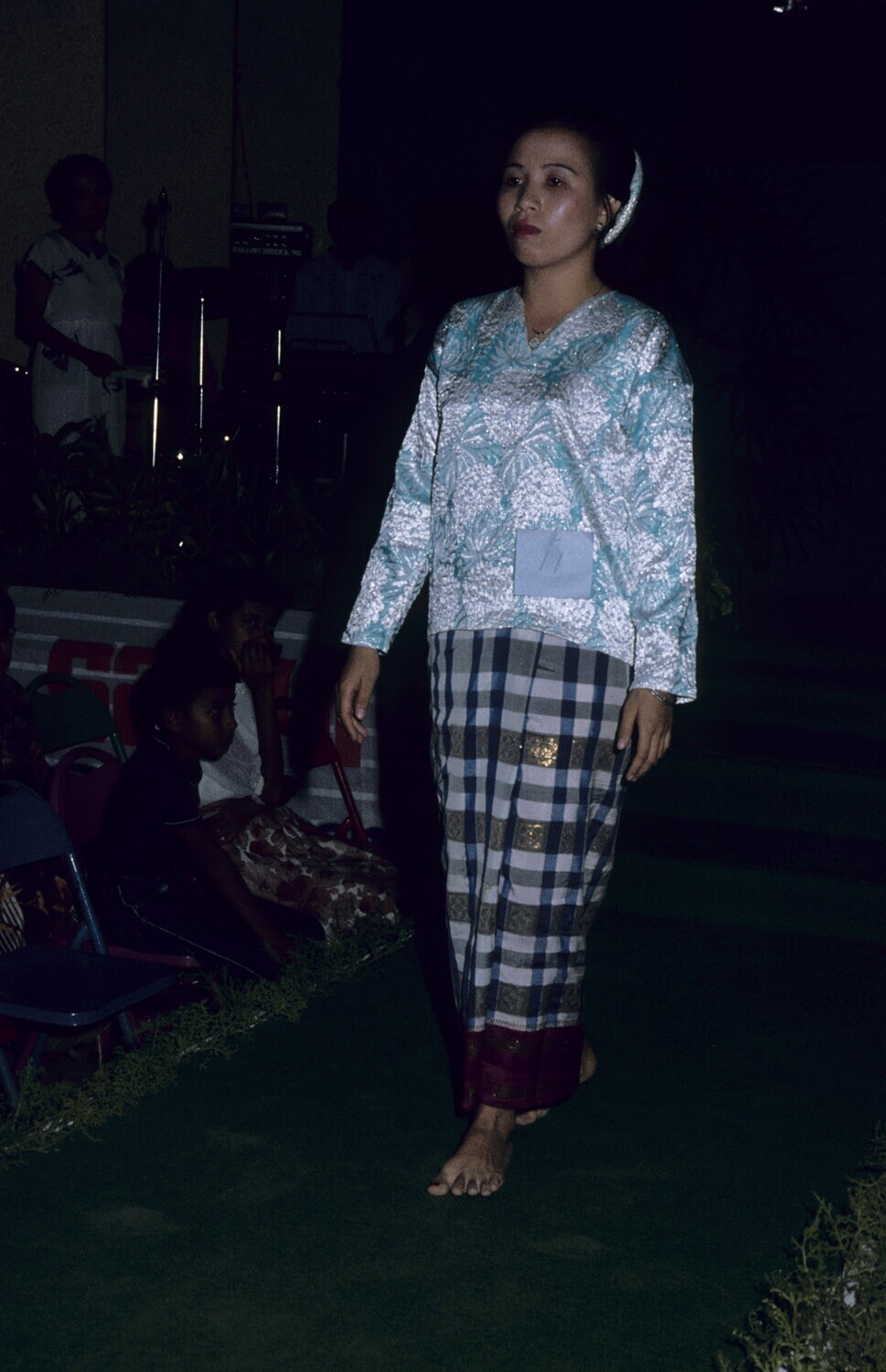 Een kledingdemonstratie van Molukse adatkleding, ach...