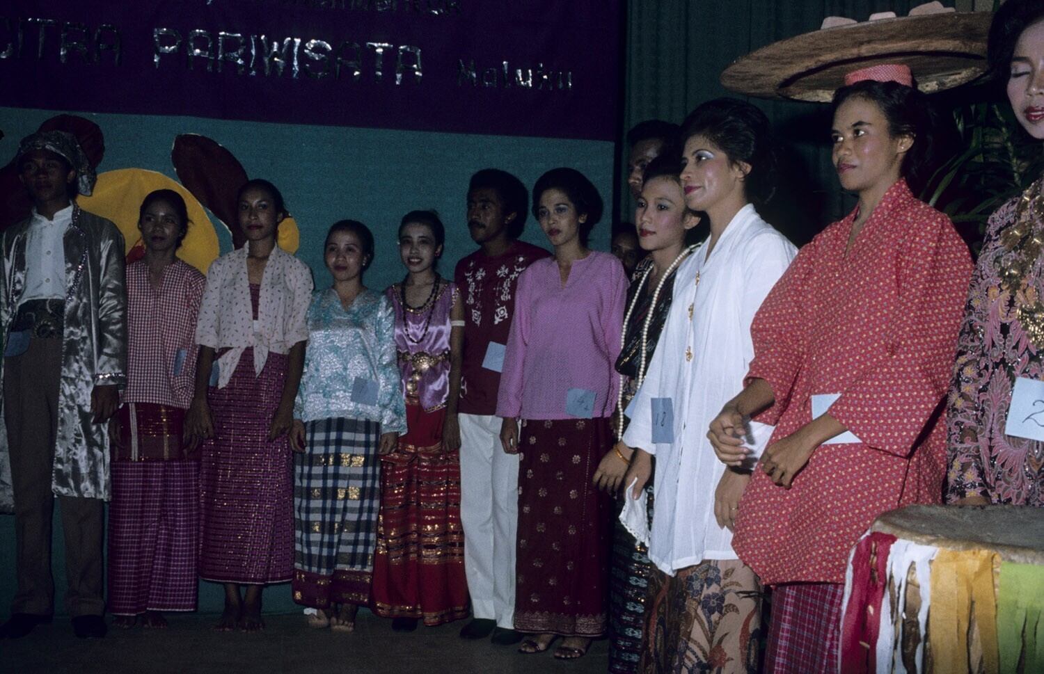 Een kledingdemonstratie van Molukse adatkleding, sar...