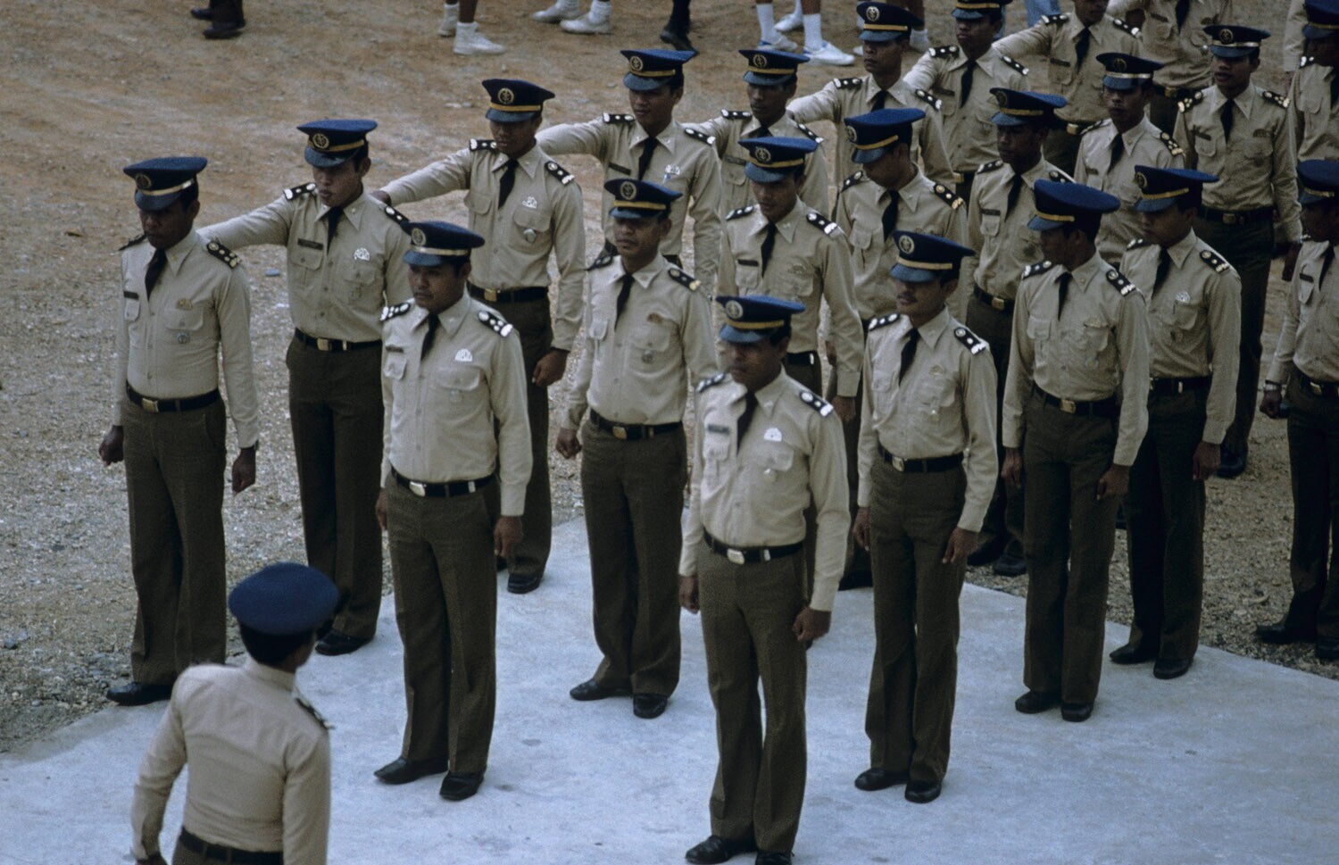 Saluerende officieren tijdens de 'Panca Sila' (natio...