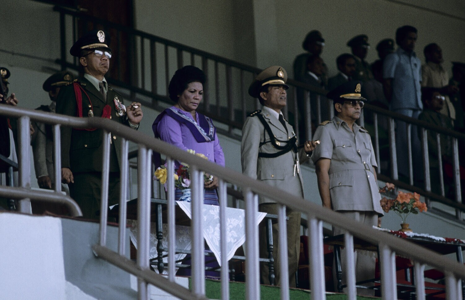Hoge officieren op het podium tijdens 'Panca Sila' (...