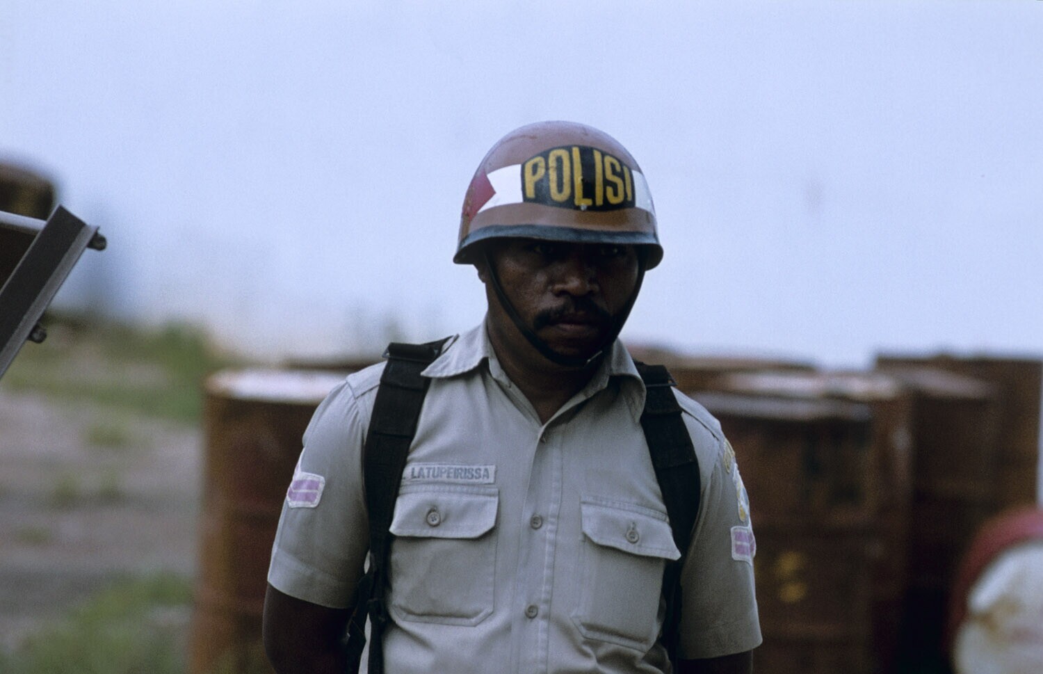 Politieman tijdens de 'Panca Sila' (nationale manife...