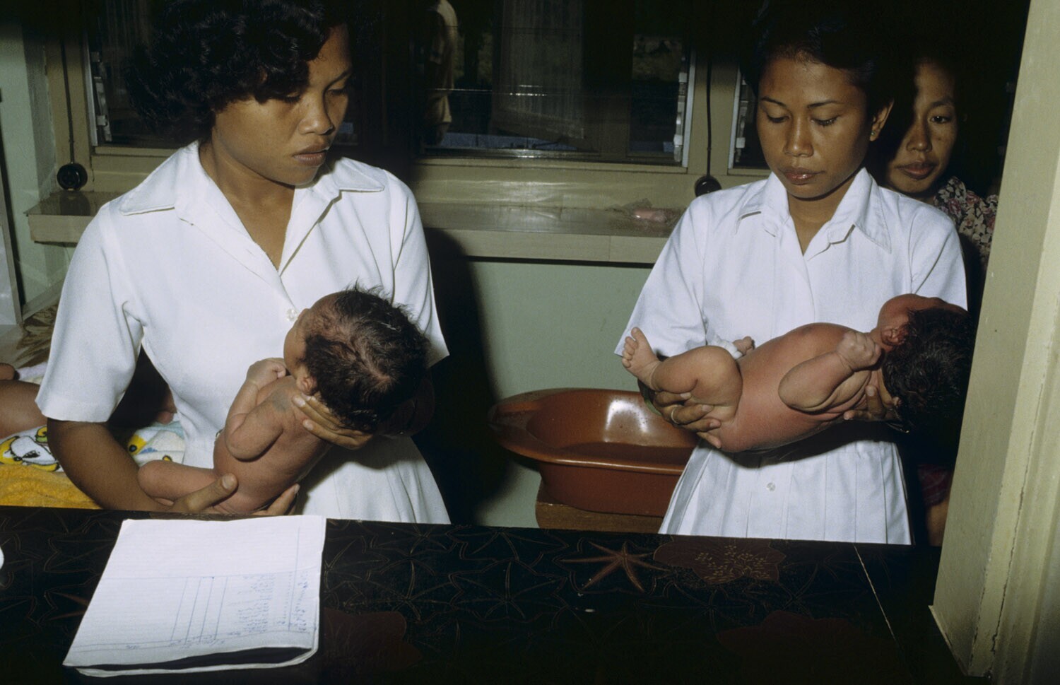 De kindjes van de kraamafdeling gaan in bad. Het Ott...