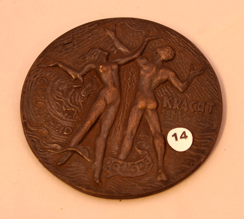 Een zilveren medaille van Mien van den Berg met opsc...