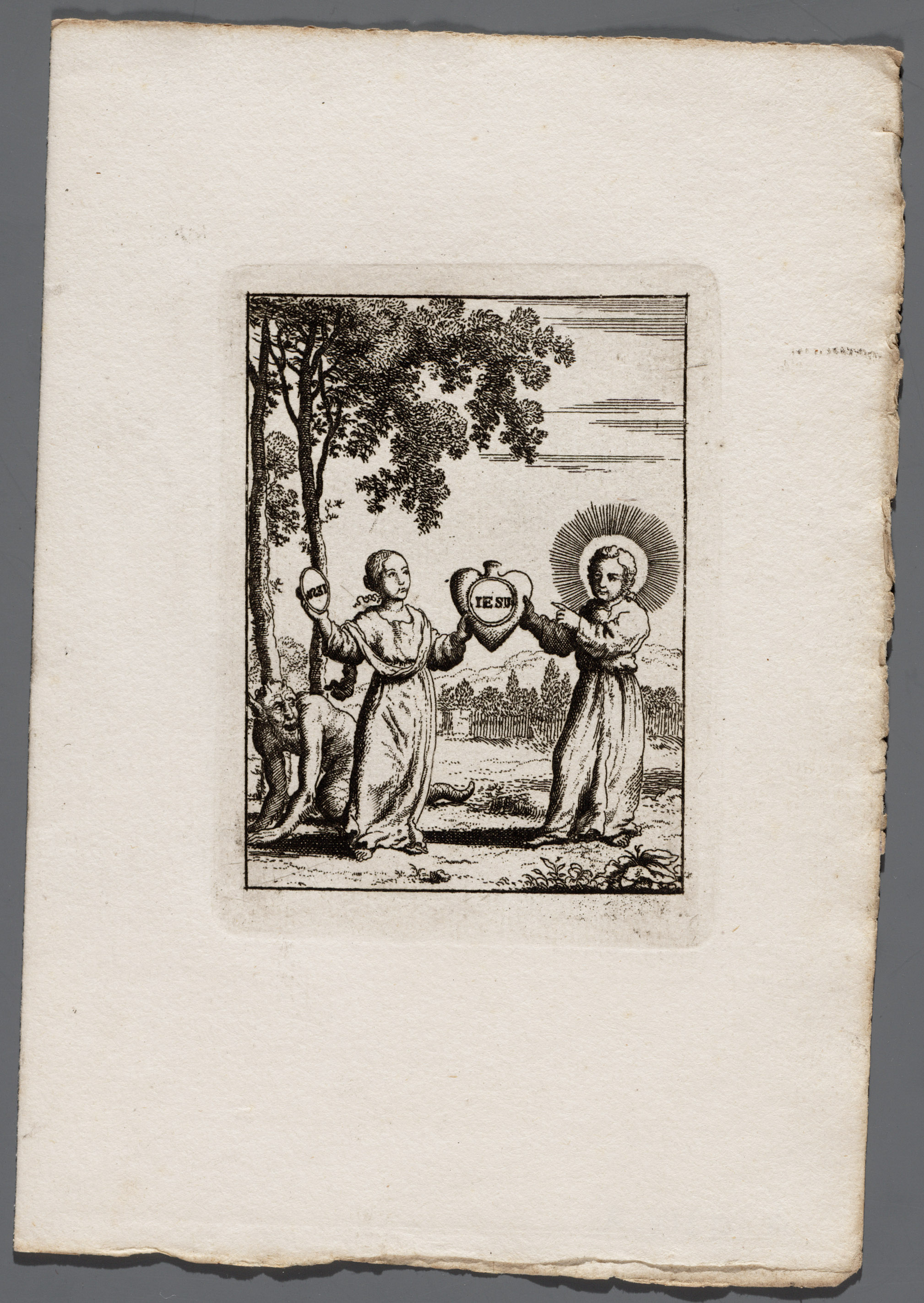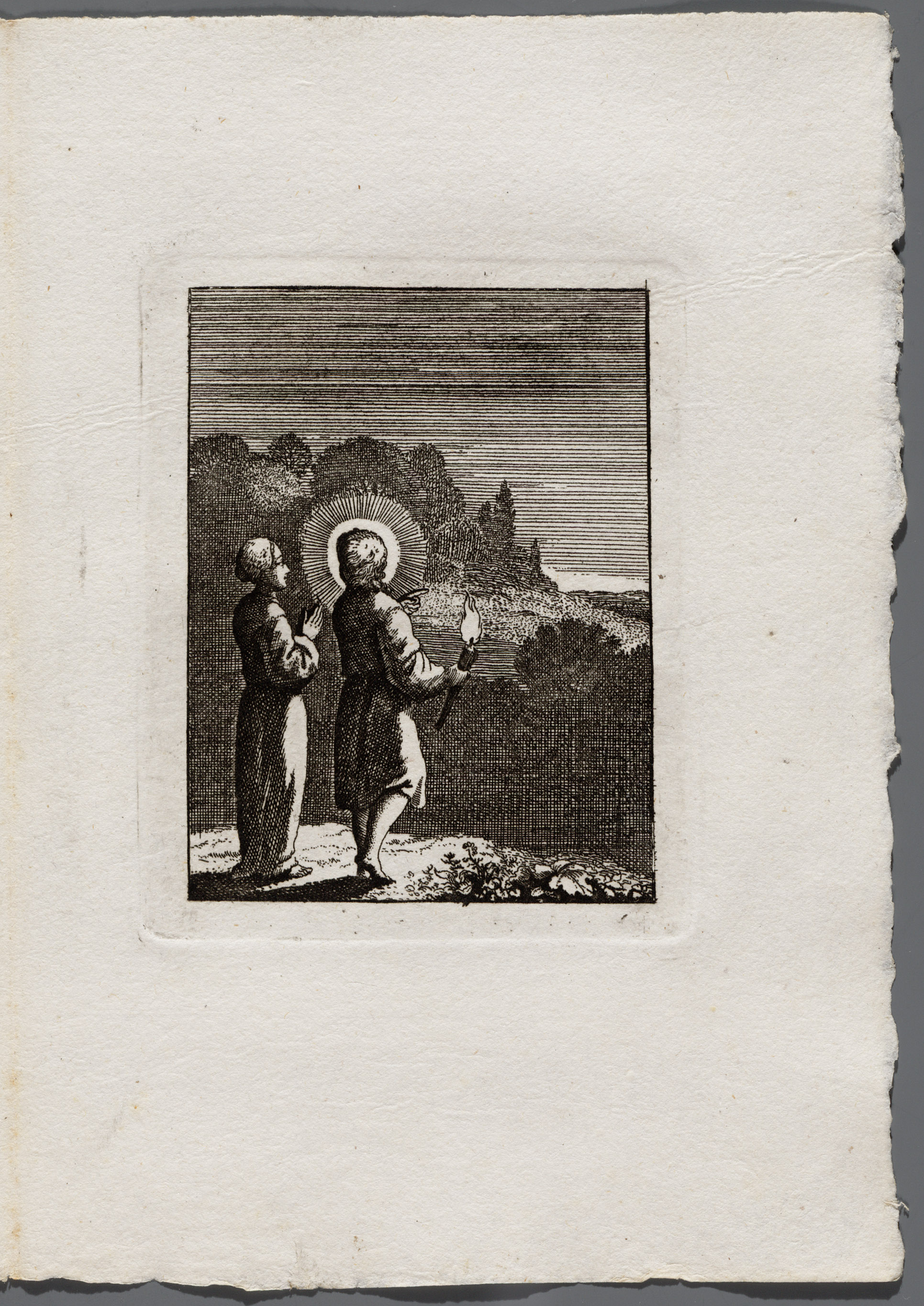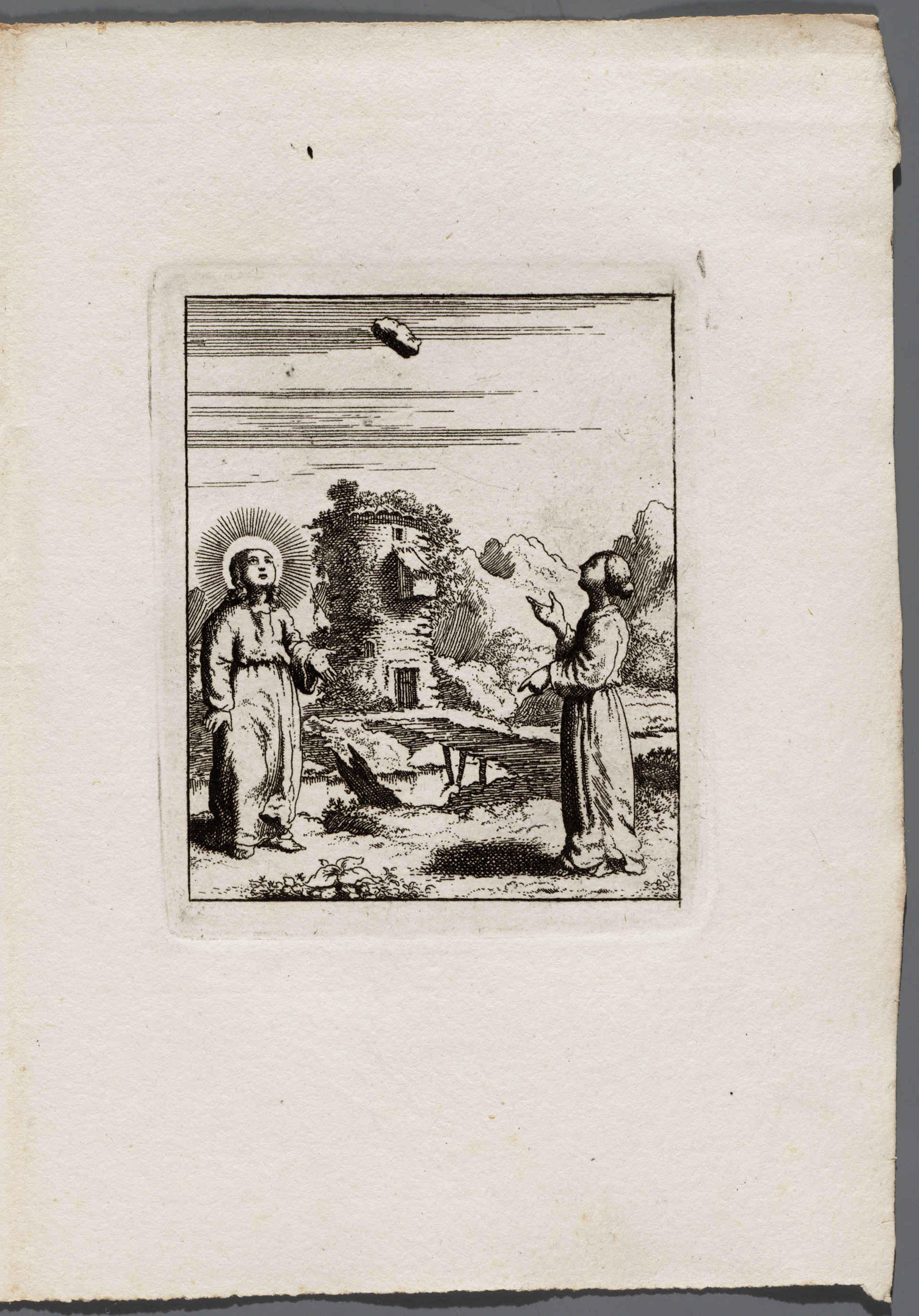 Blad met 2 prenten uit "Jezus en de ziel"