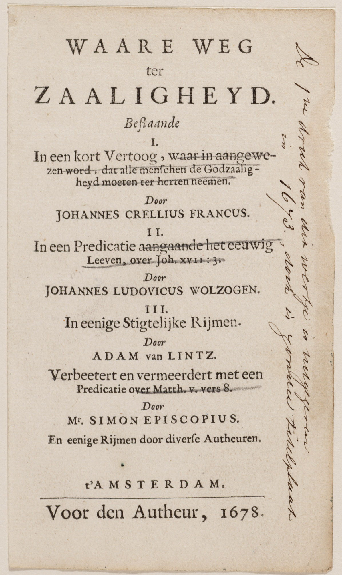 Op de tytel-print van de Waare Weg ter Zaaligheyd