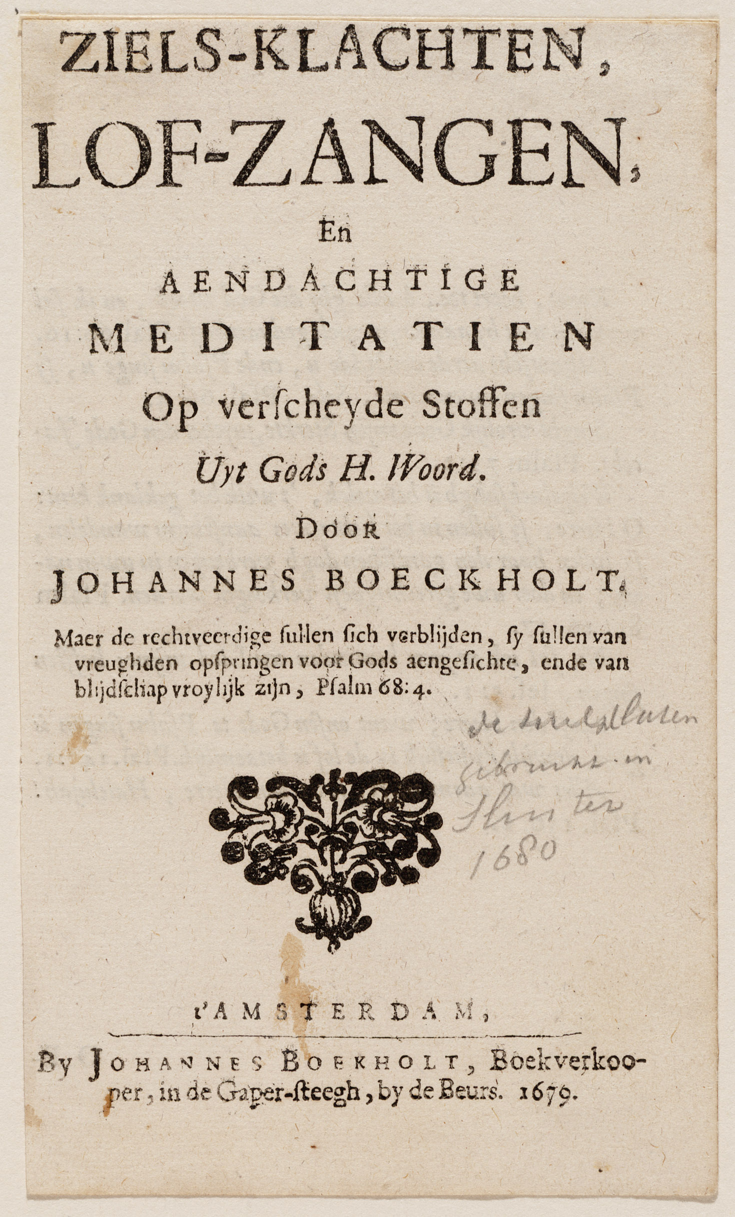 Titelpagina "Ziels-klachten, Lof-Zangen en Aendachti...