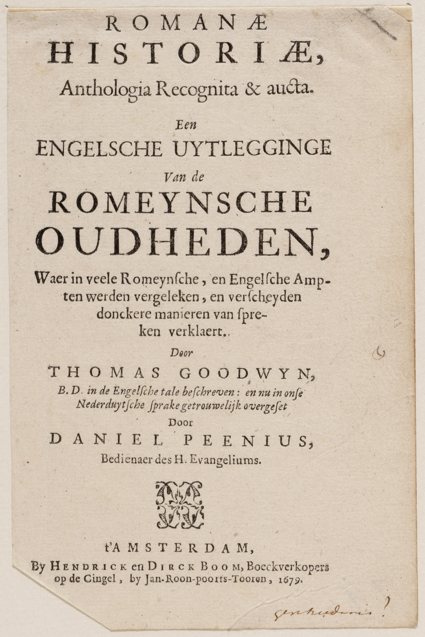 Titelpagina van "Romeinse oudheden"