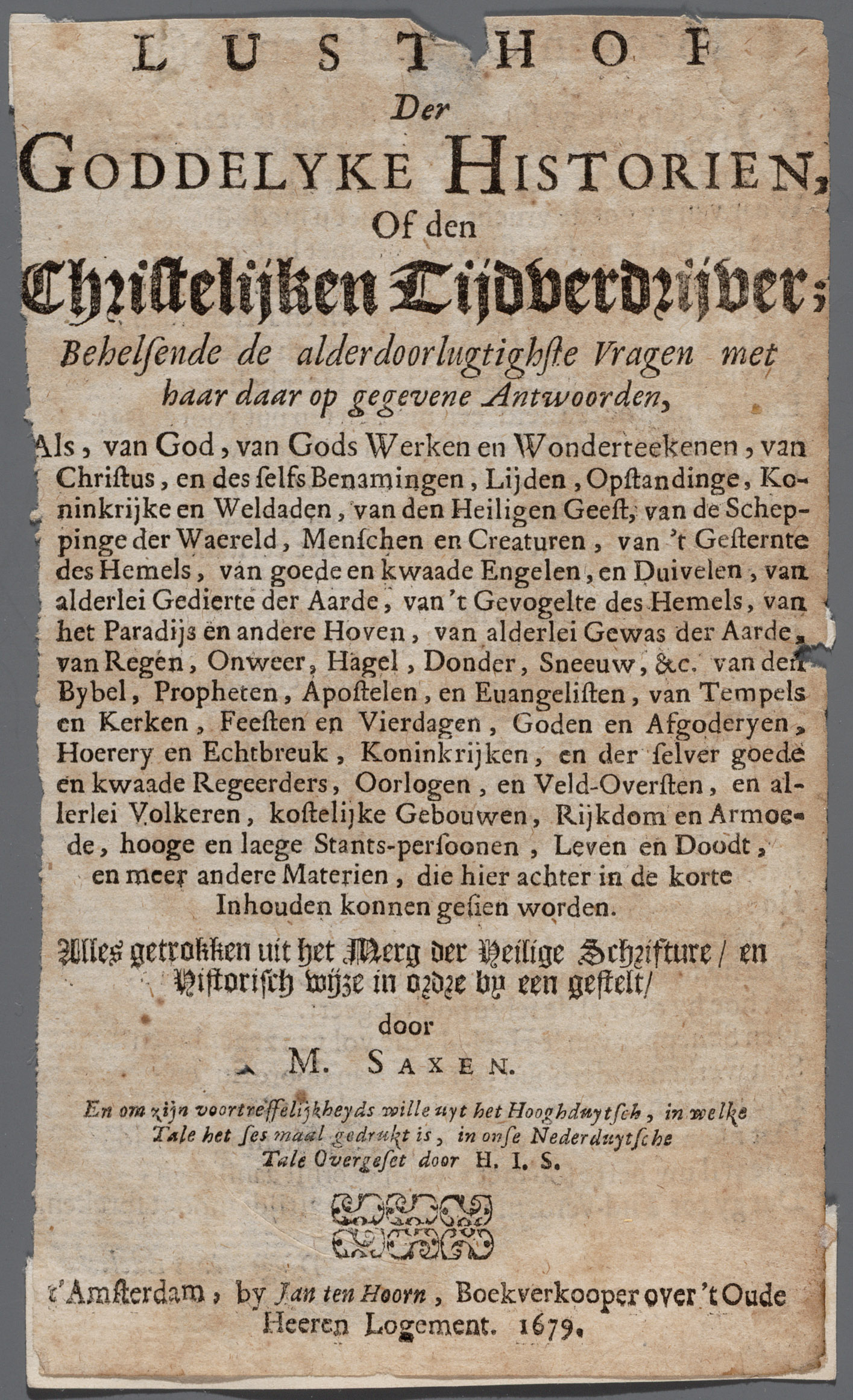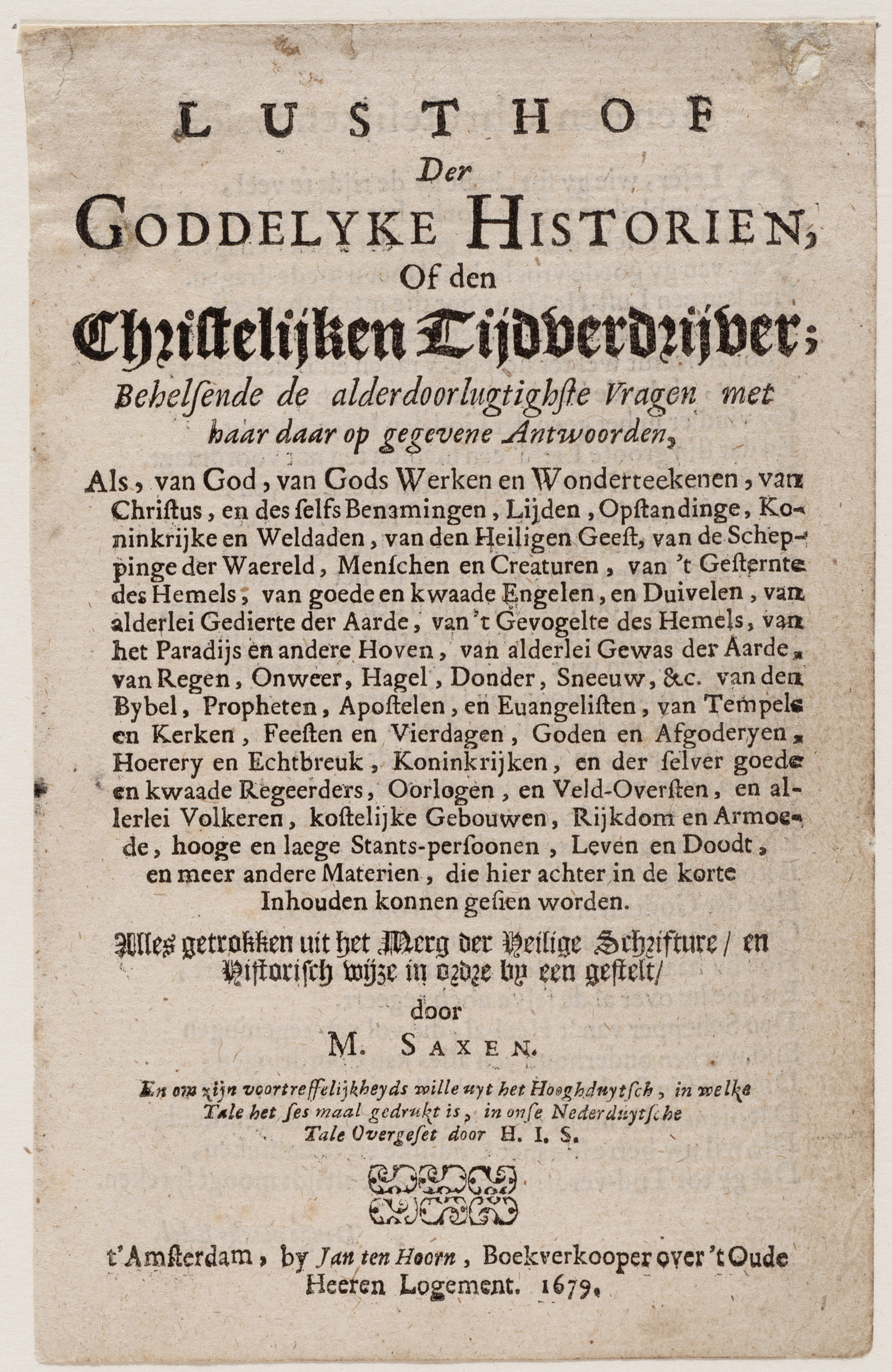 Titelpagina van "Lusthof der Goddelyke historien"