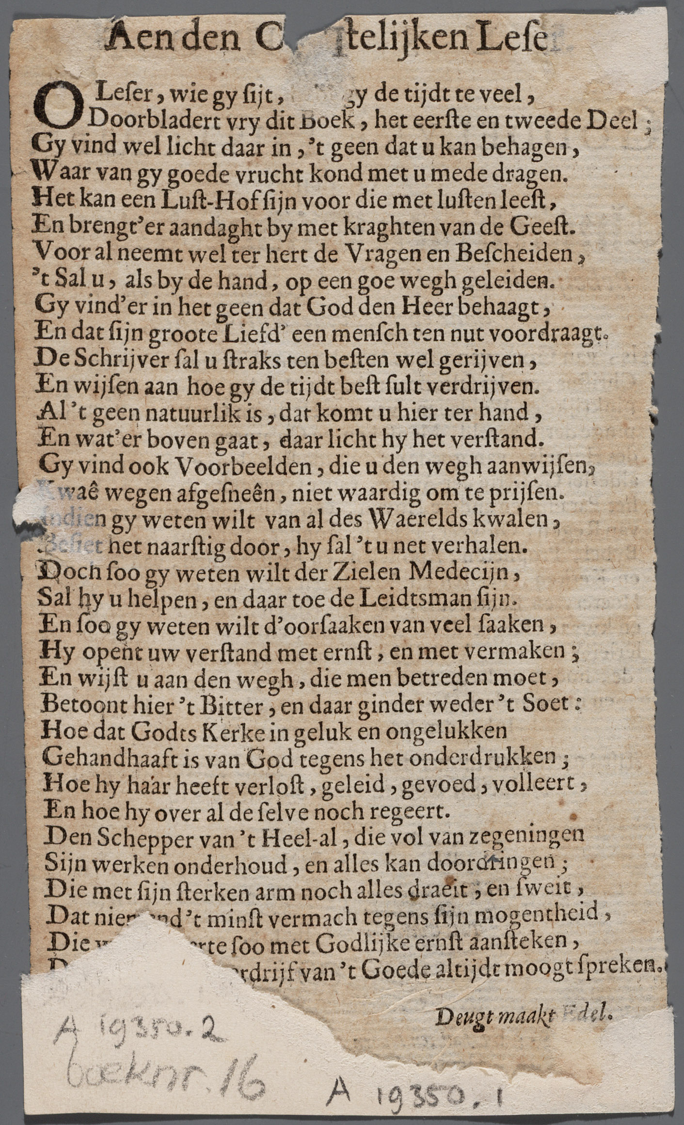 Aen den Christelijken Leser