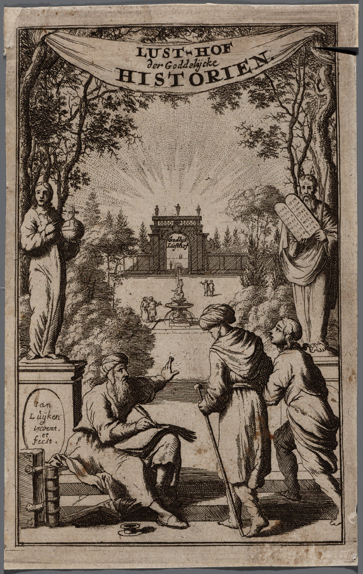 Titelprent van "Lusthof der Goddelyke historien"