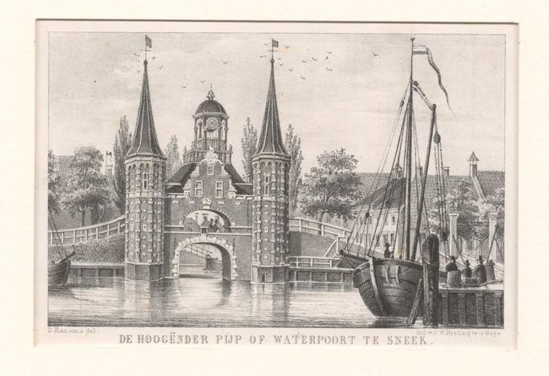 Gezicht op de Hoogenderpijp of Waterpoort te Sneek