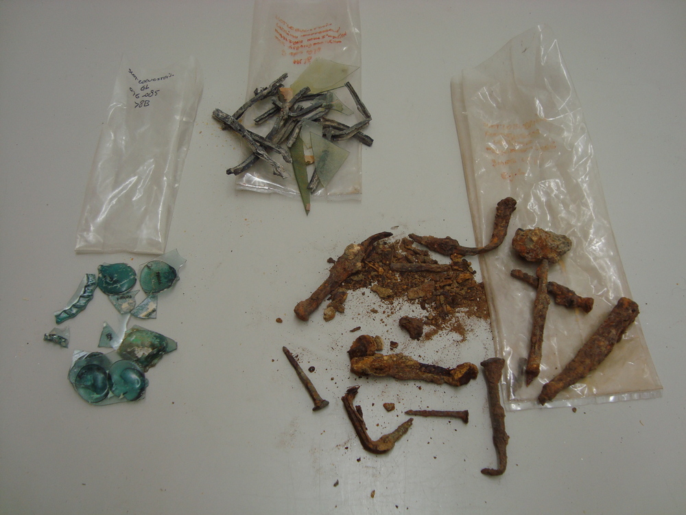 Fragmenten, aardewerk/ijzer/glas,