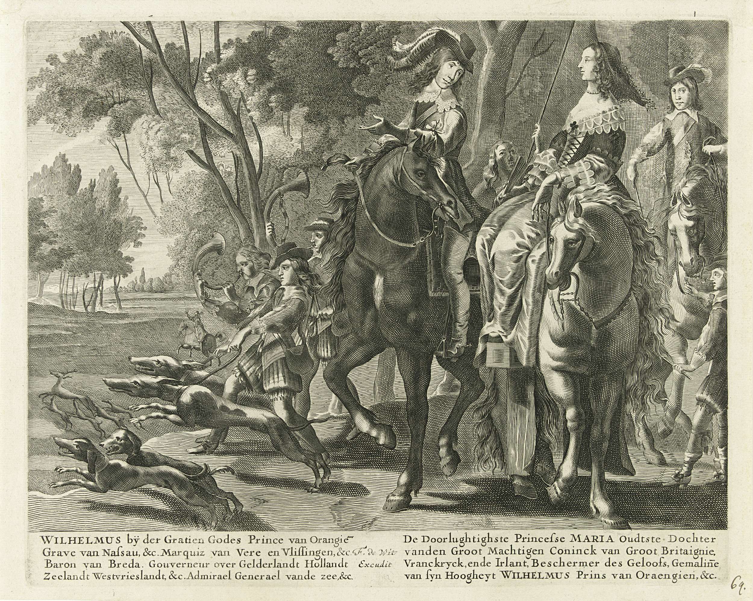 Ruiterportret van Willem II, prins van Oranje, en Ma...
