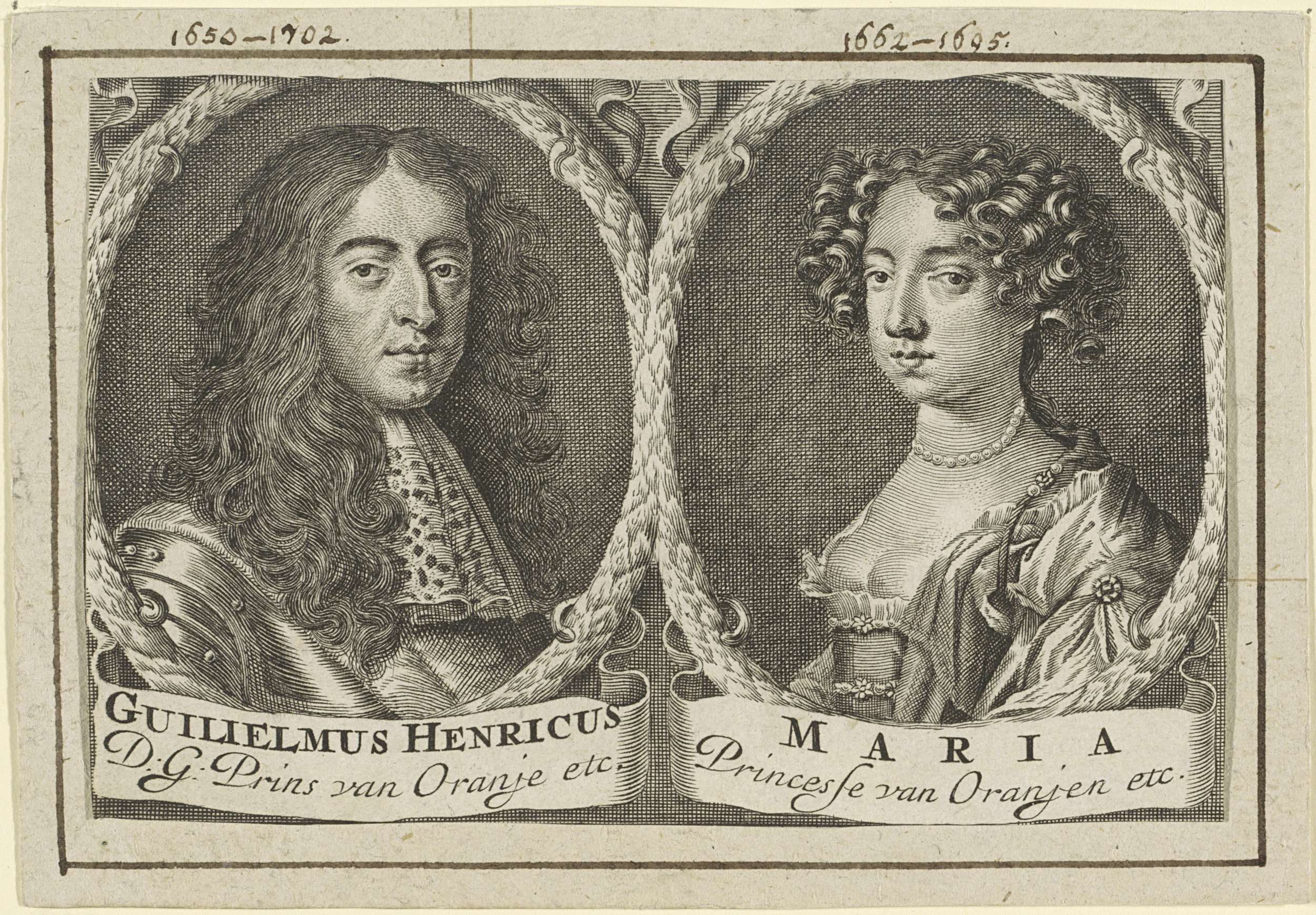 Portretten van Willem III, prins van Oranje, en Mari...