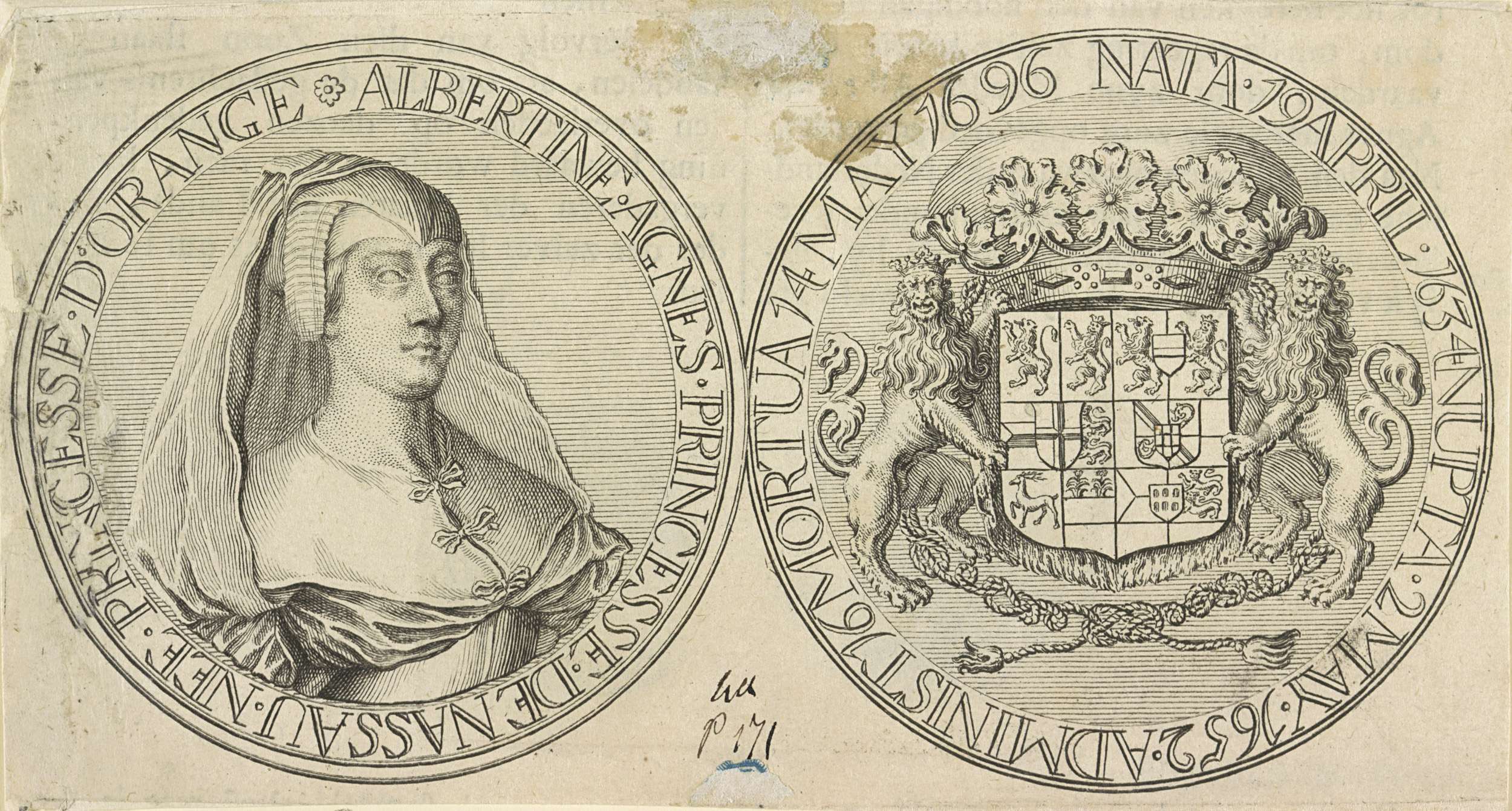 Penning met portret van Albertine Agnes, prinses van...