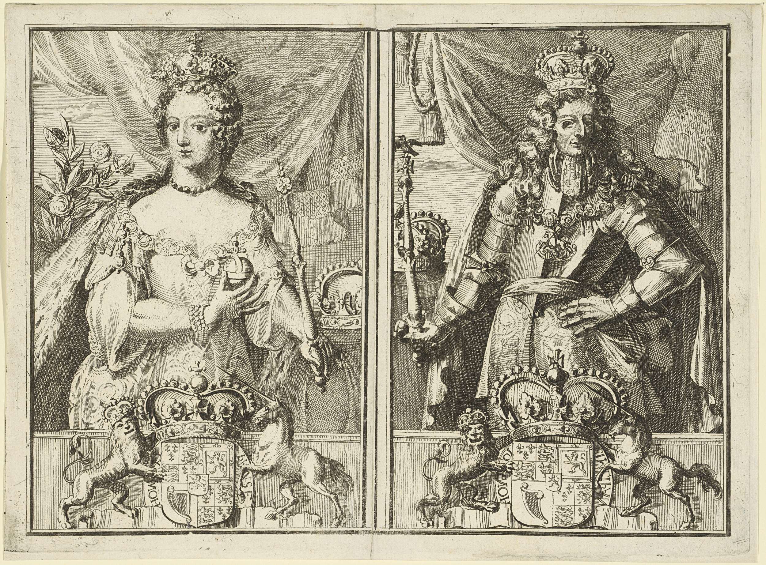 Portretten van Maria II Stuart en Willem III, prins ...