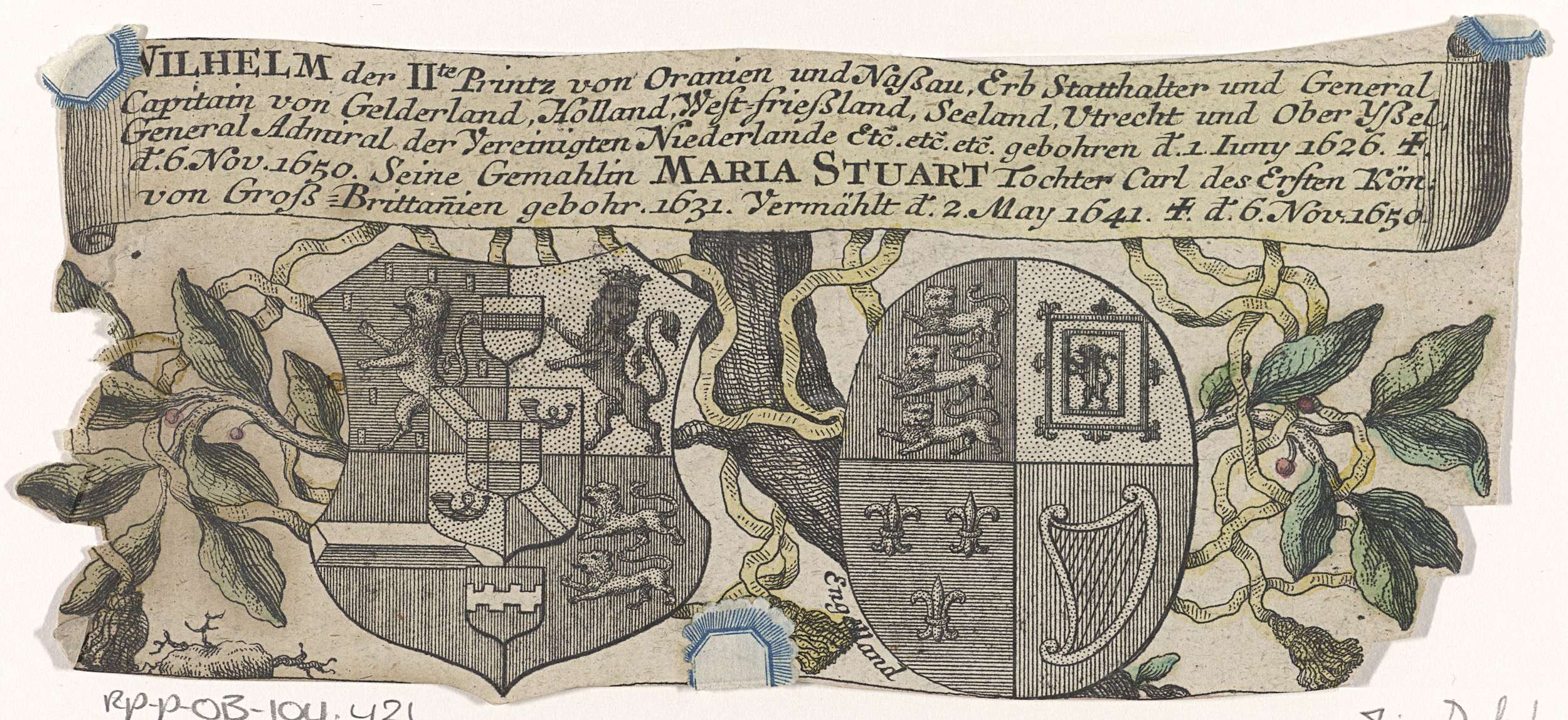 Wapens van Willem II, prins van Oranje, en Maria Hen...
