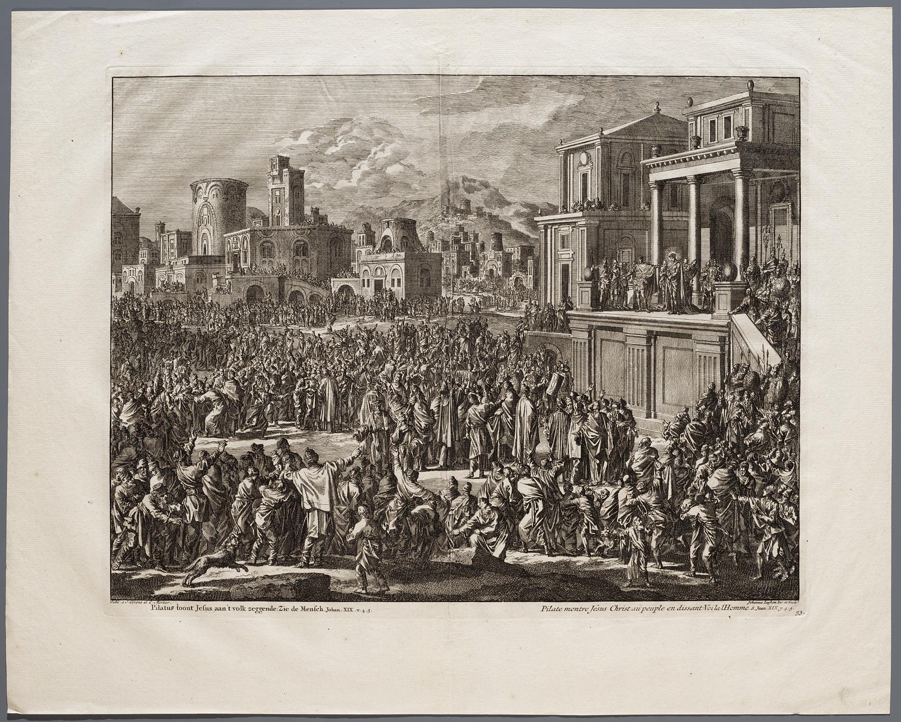 Pilatus toont Jesus aan ´t volk zeggende: zie de mensch
