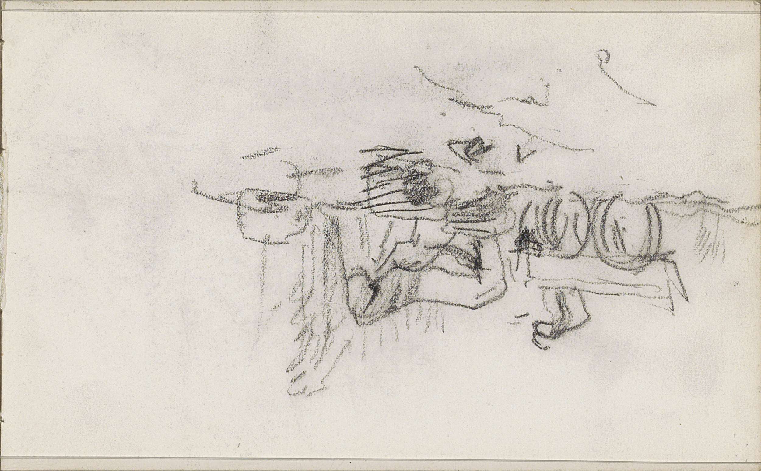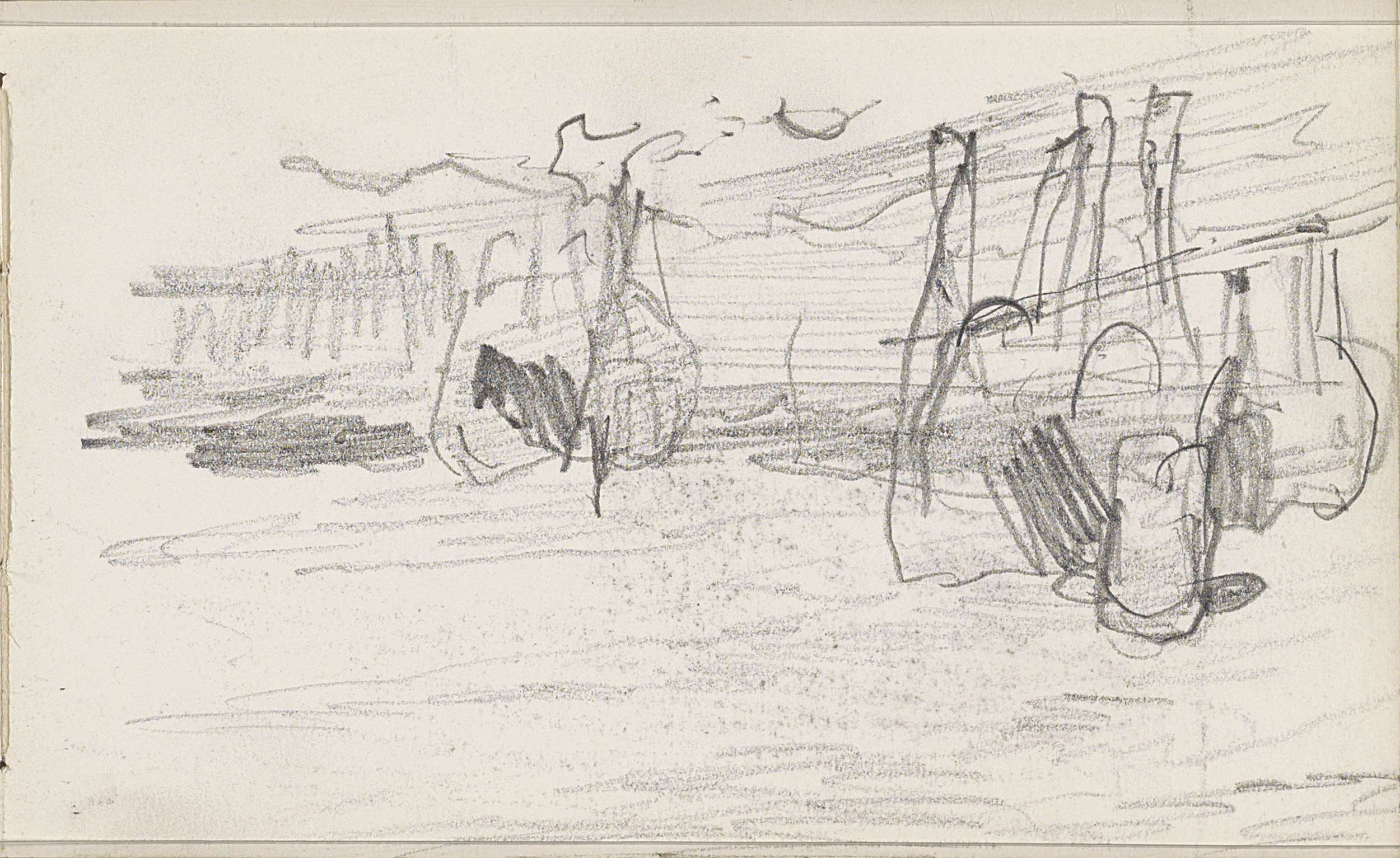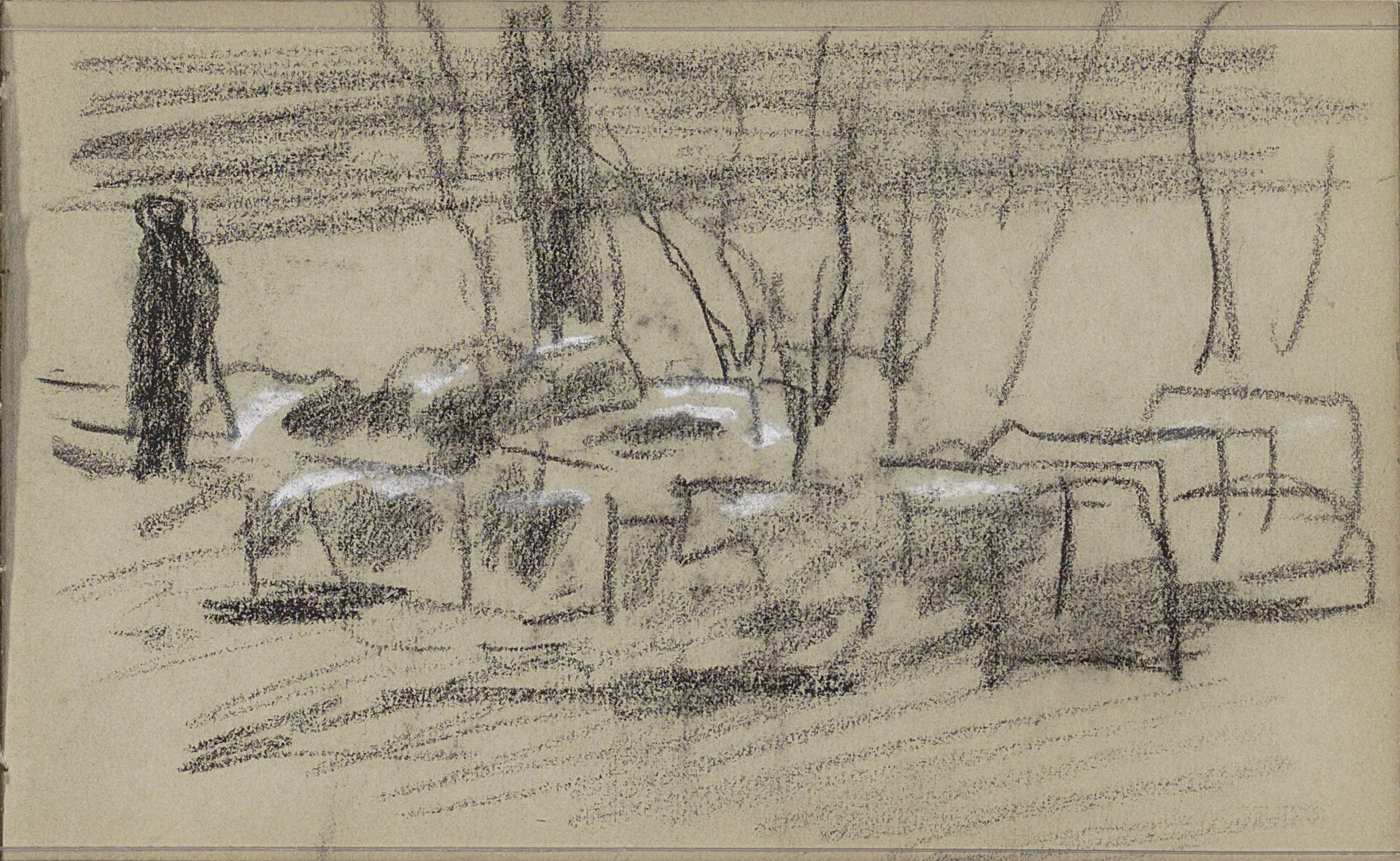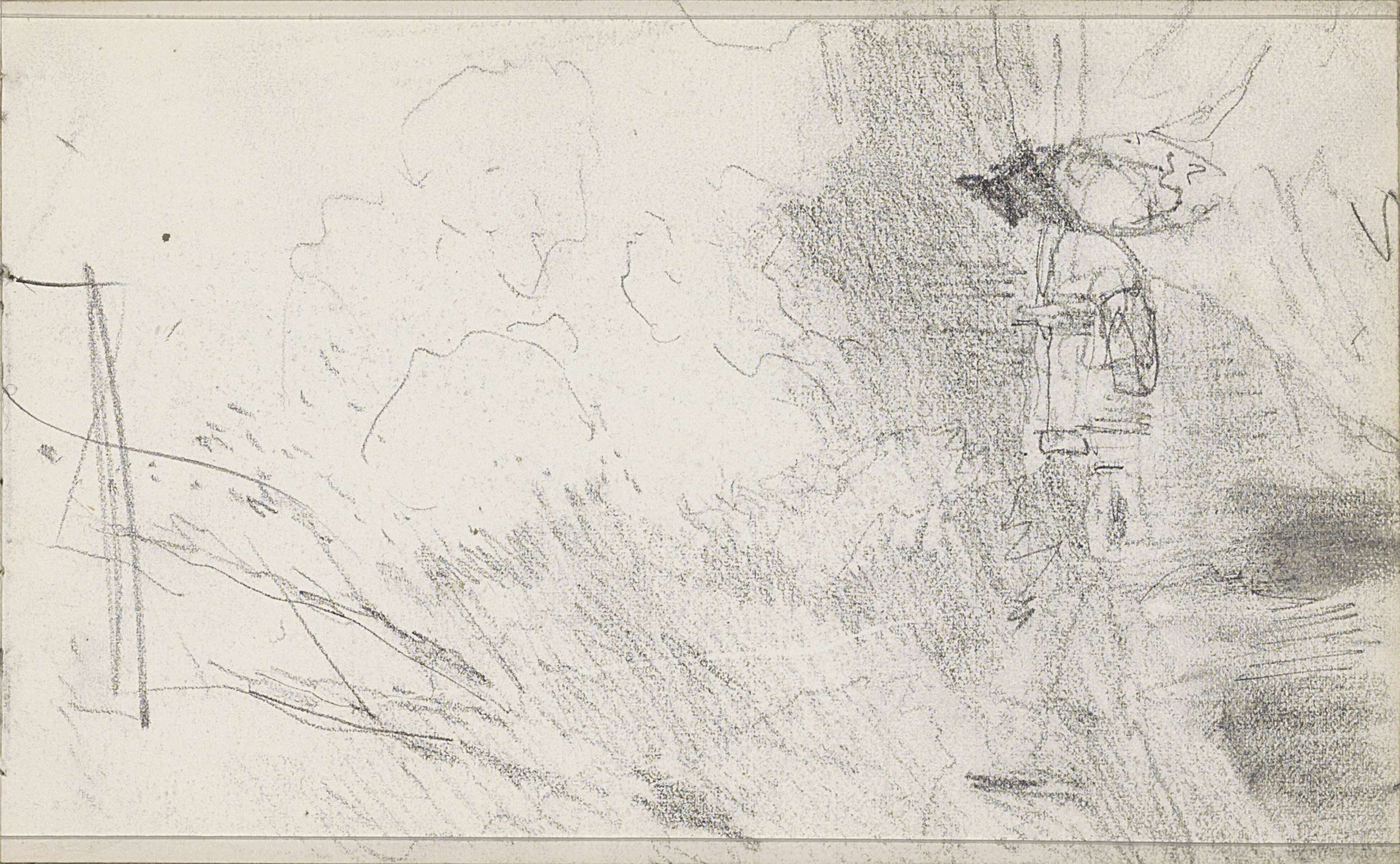 Figuurstudies en vee bij een boom