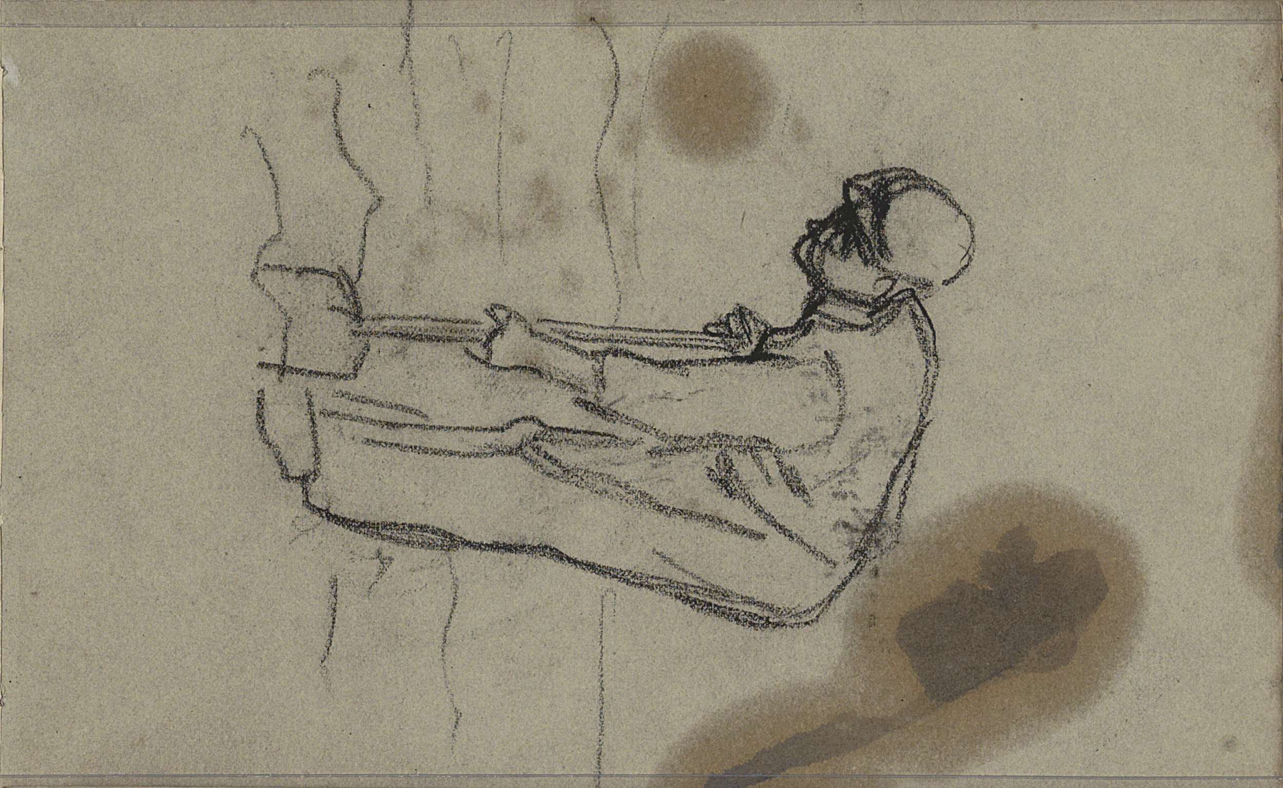Voorover buigende figuur bij een boom