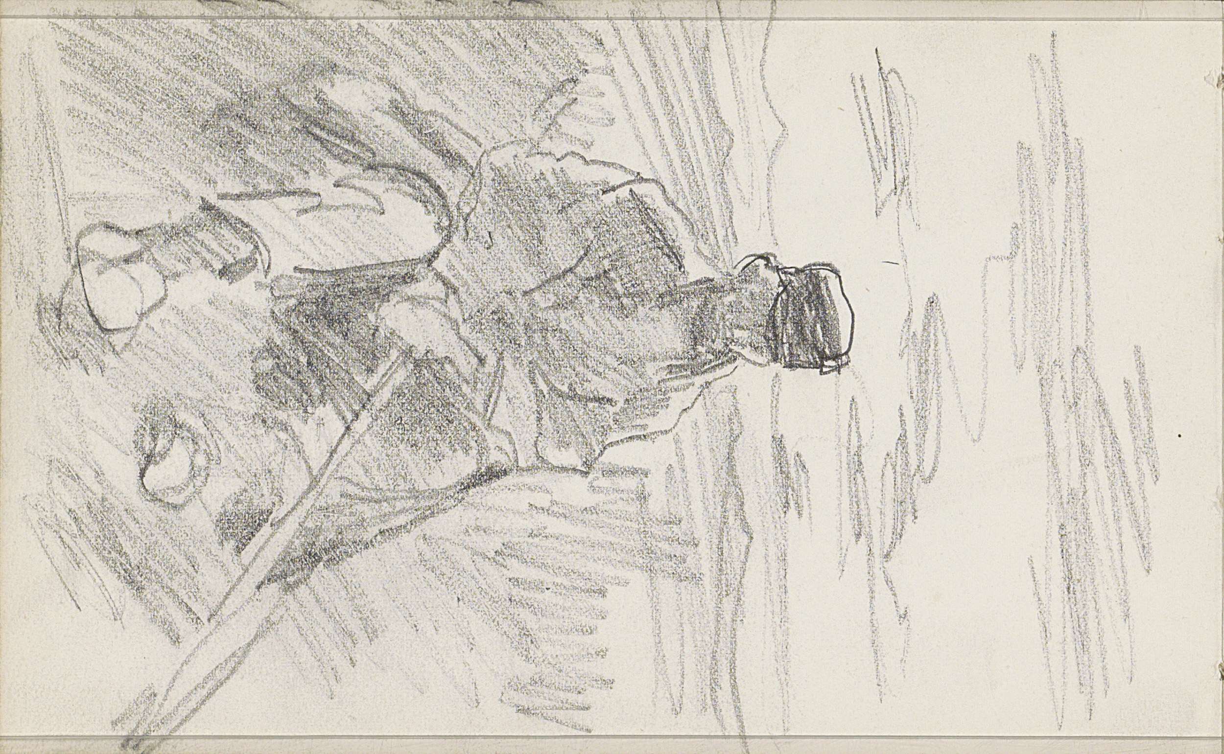 Landarbeider, zittend in een weiland met een stuk la...