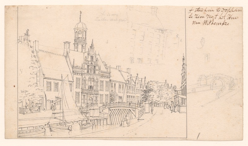 Gezicht op het stadhuis te Dokkum vanaf de Zijl