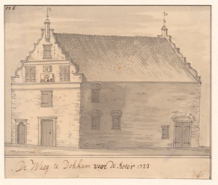 Gezicht op de Waag voor de boter te Dokkum