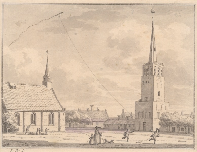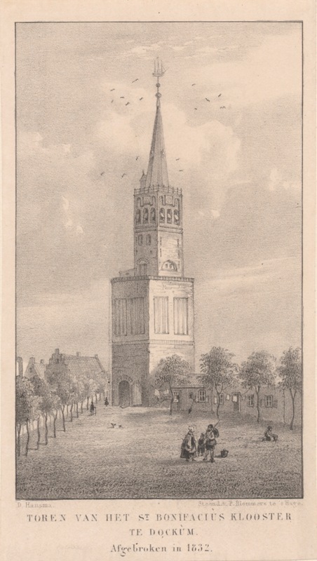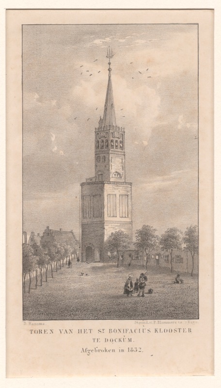 Gezicht op de kerk en de toren te Dokkum