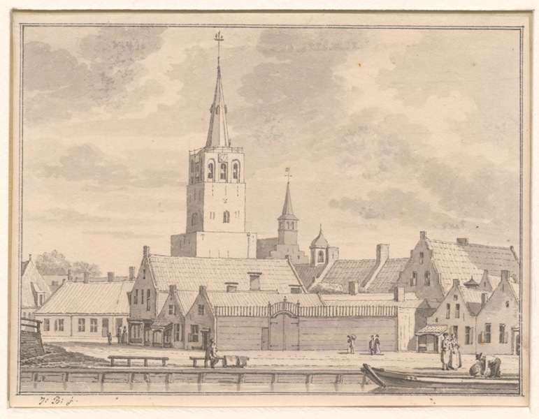 Gezicht op het Oude Bagijnhof en kerk te Dokkum