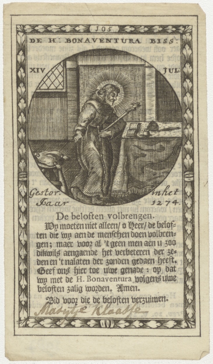 H. Bonaventura, gebed, Marijtje Klaasse, kz. levensb...