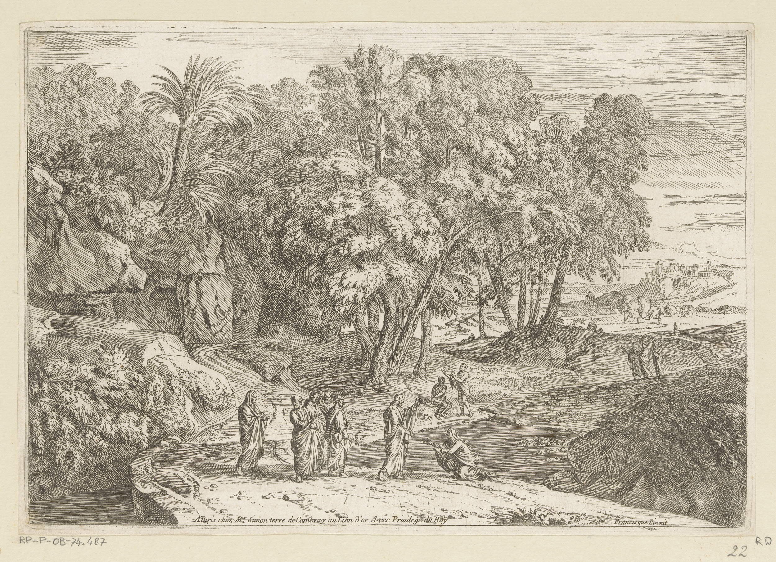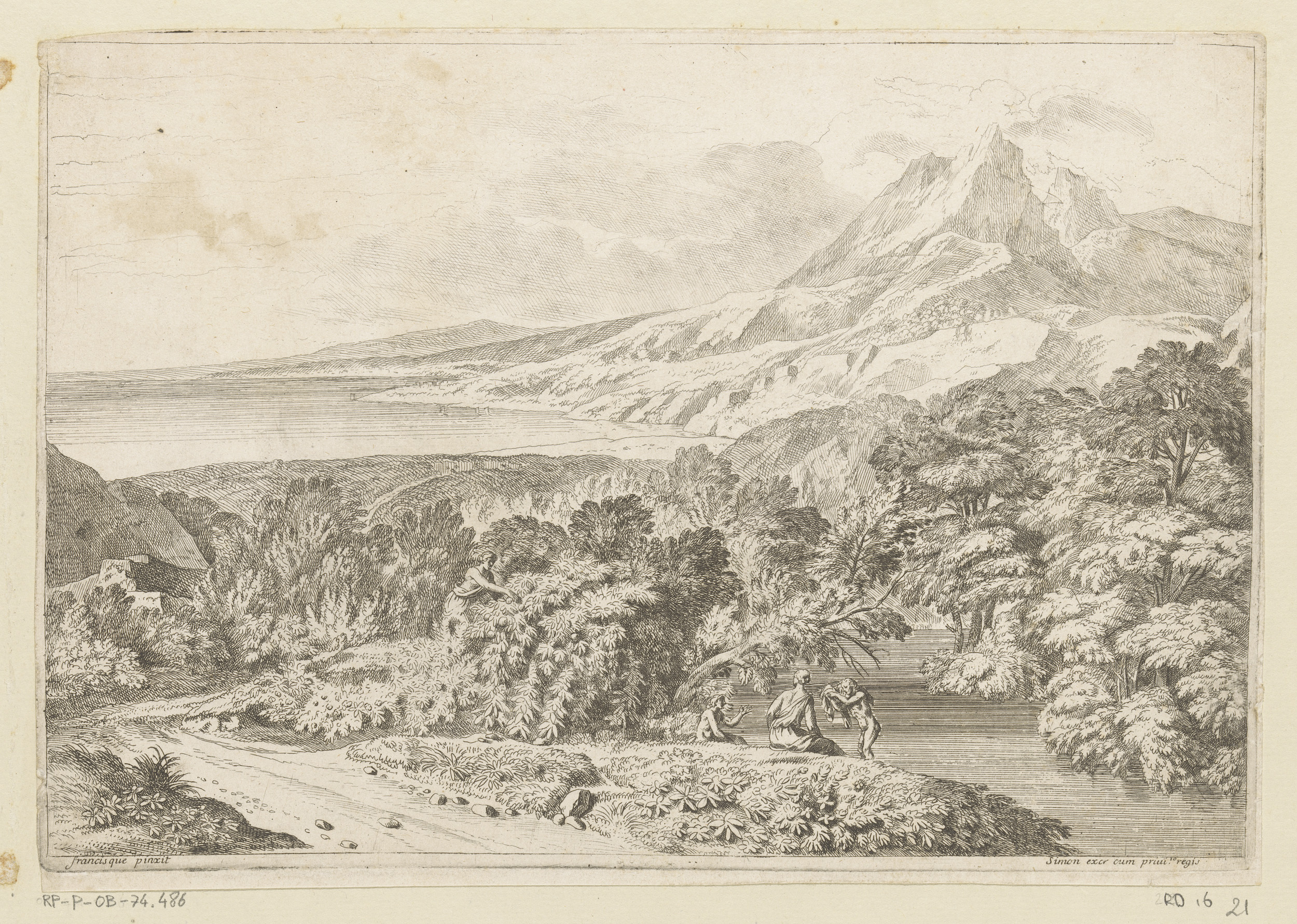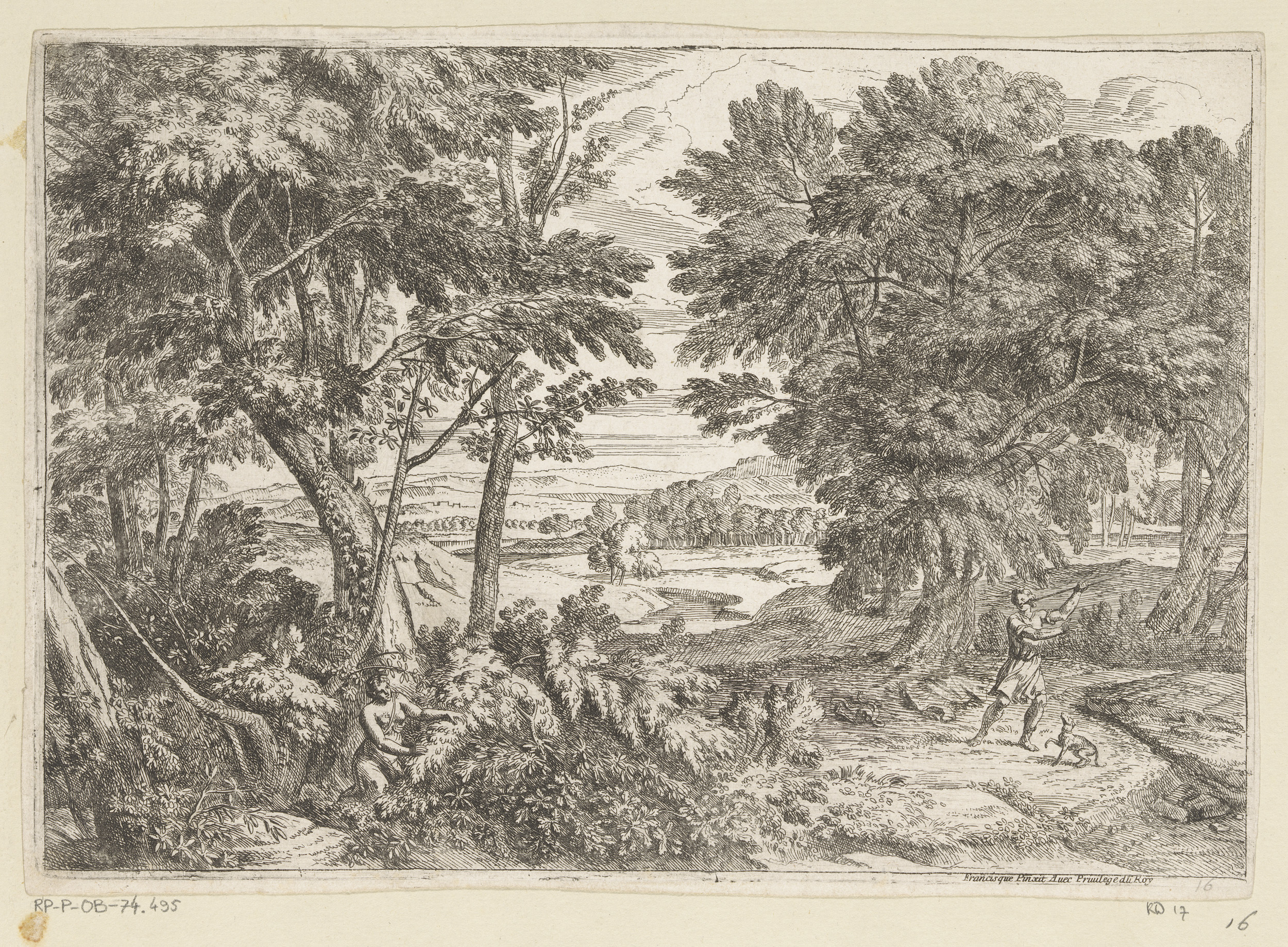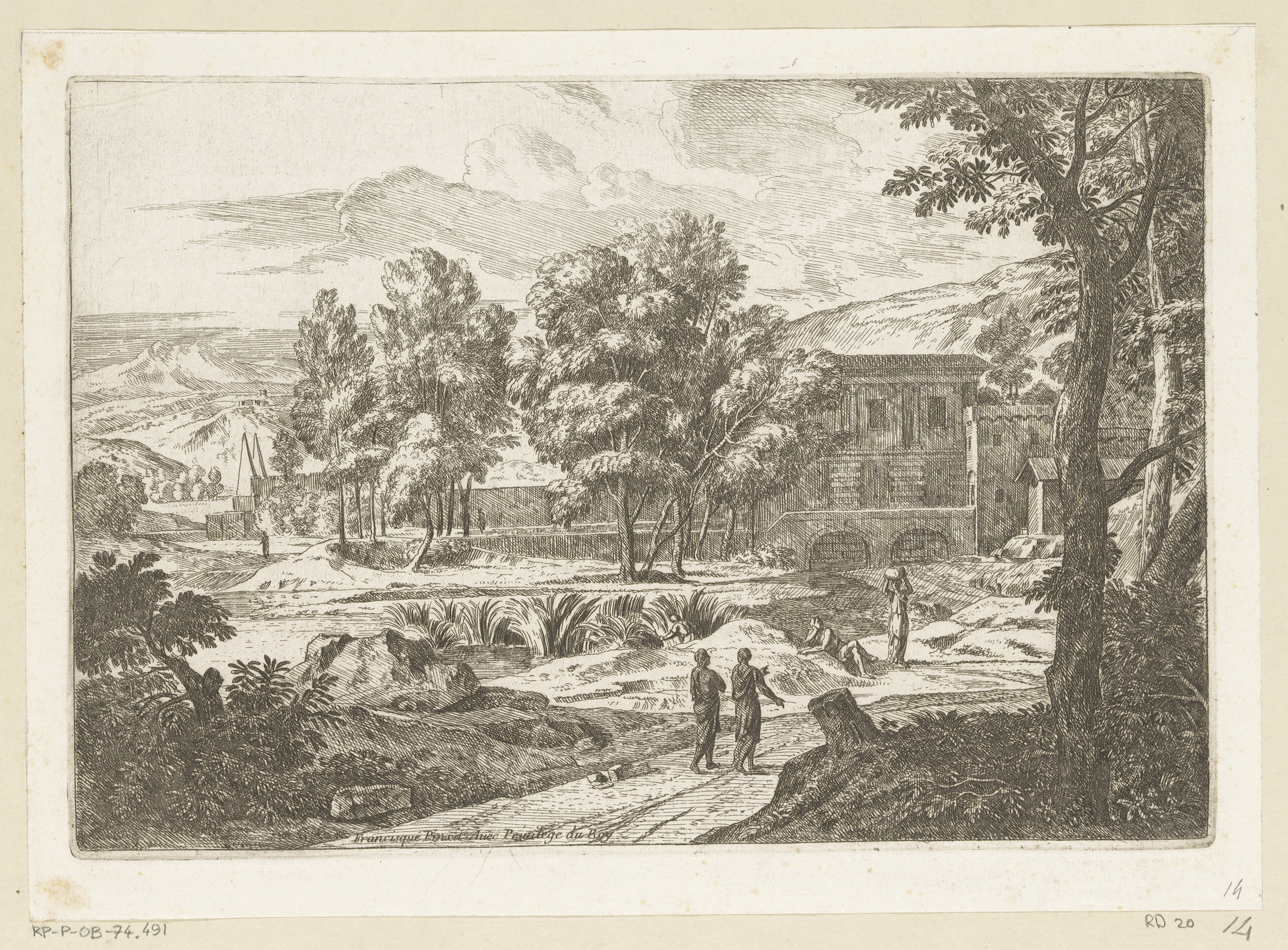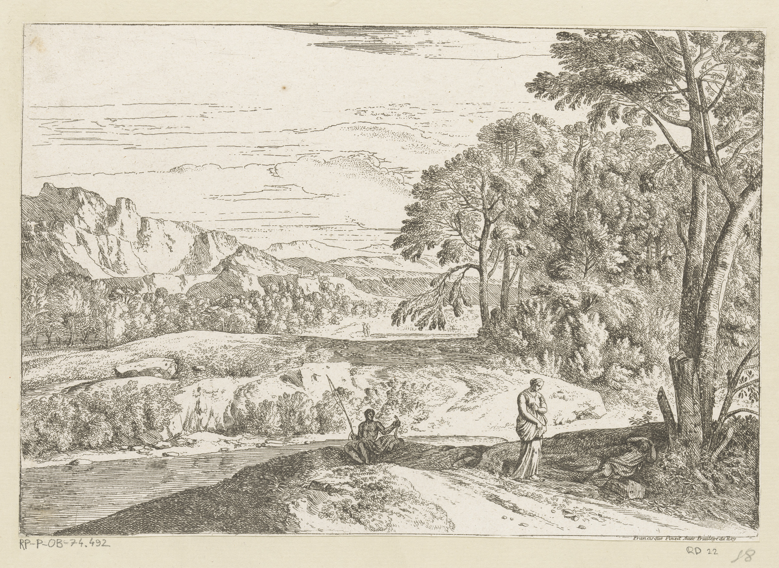 Arcadisch landschap met twee mannen en een fruit-dra...