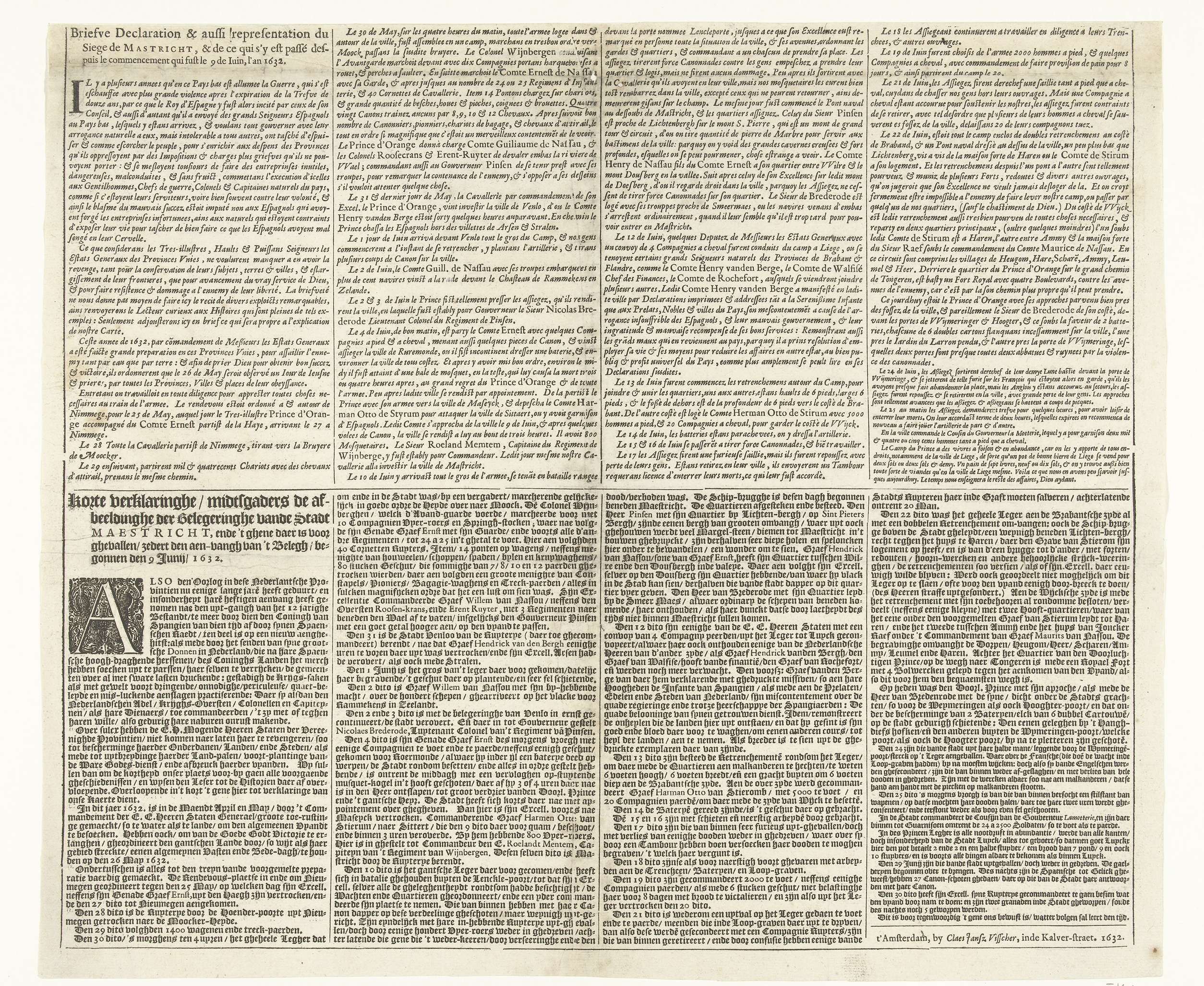 Tekstblad bij een kaart van Maastricht belegerd door...
