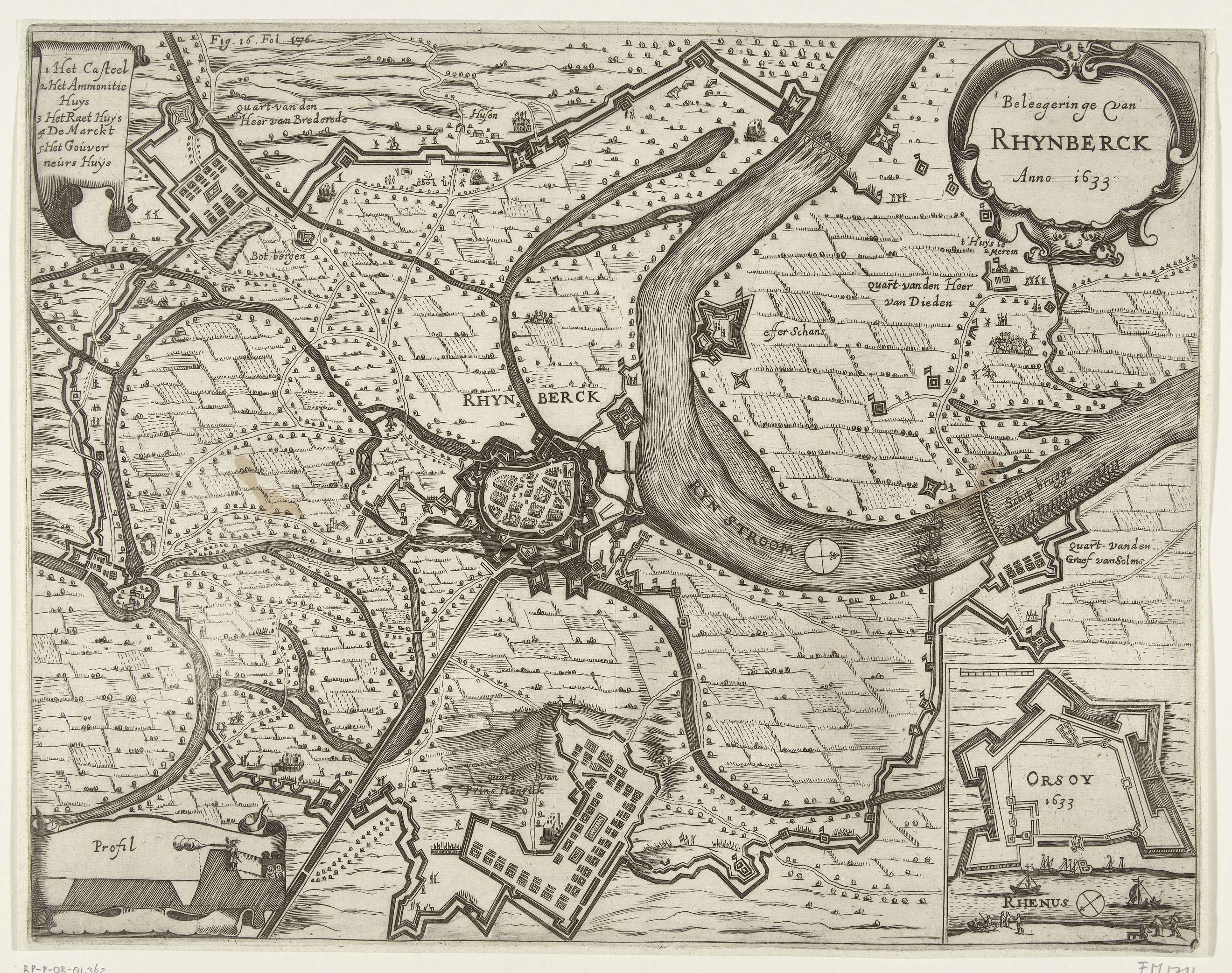 Kaart van het beleg van Rijnberg, 1633