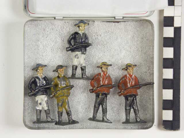 Drie engelse koloniale soldaten van tin