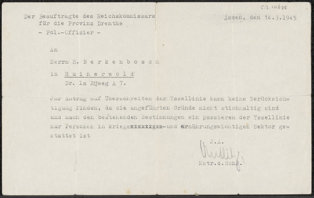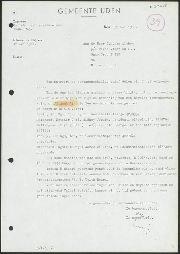 Brief in enveloppe. 15 maart 1944. Aan den heer G.C....
