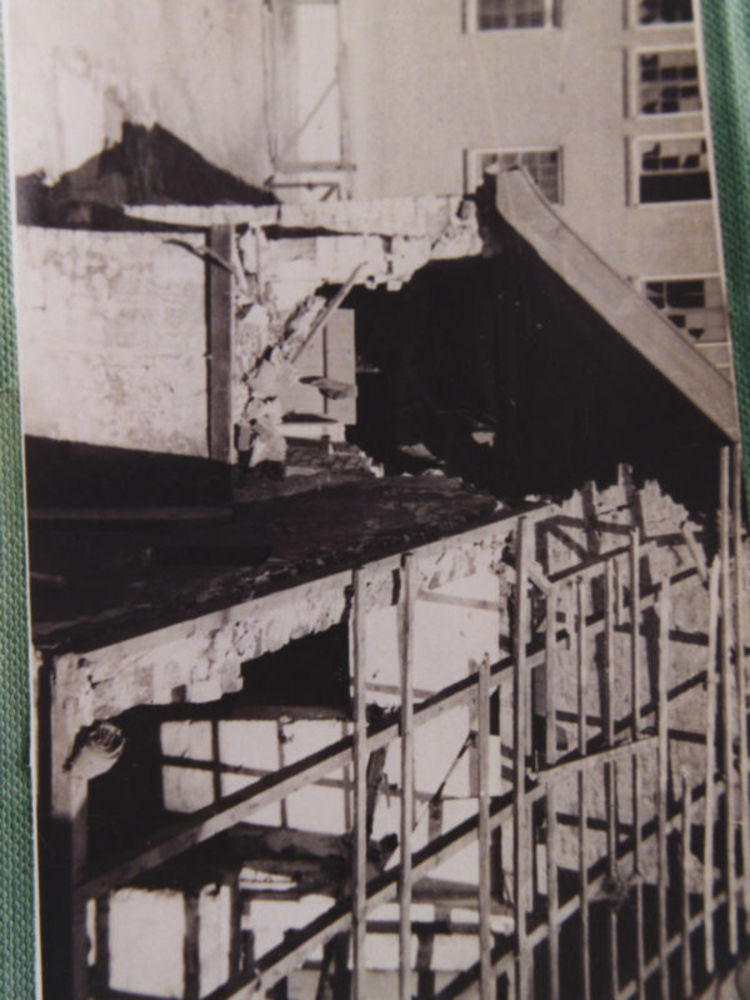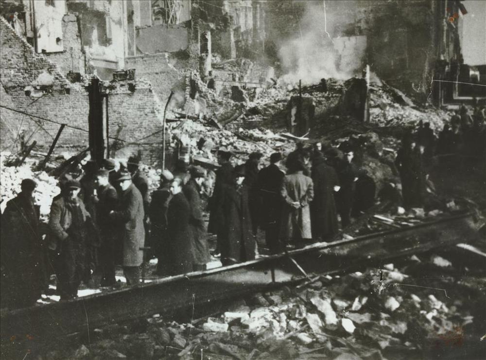 Foto van gebouwen met oorlogsschade aan de Kloosters...